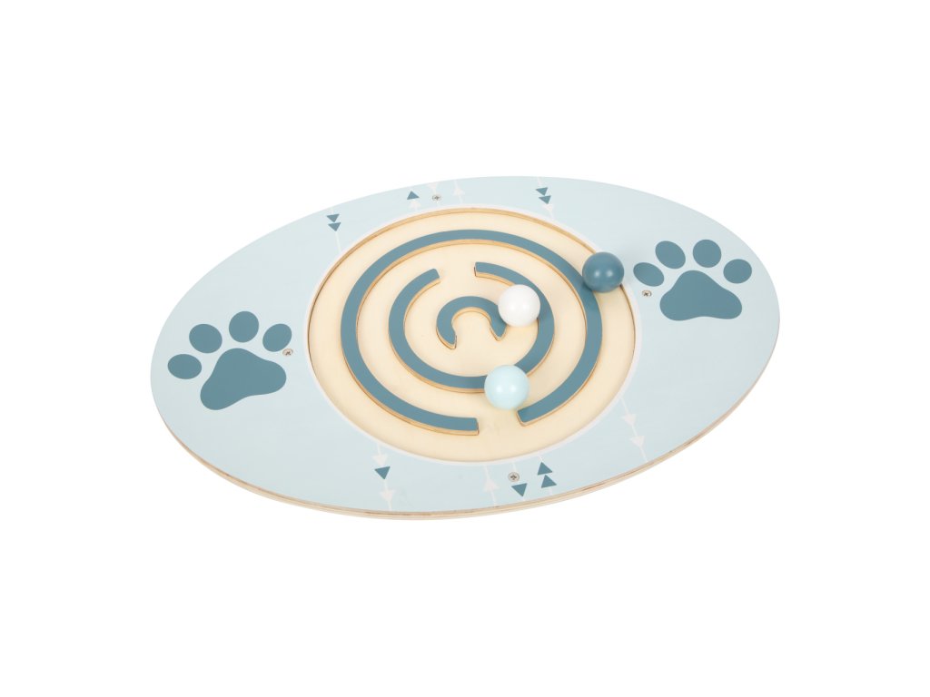 Buďte obratní jako šelma! Trénujte rovnováhu a koordinaci pohybu dětí pomocí balančního prkna, přesunou kuličku do středu bludiště? Pravidelným tréninkem je možno procvičit svaly nohou, pánve i zad a přitom zdokonalit soustředění a trpělivost. Prkno svým oválným tvarem a ikonami tlapek naznačuje a nabízí nášlapnou plochu. Svým návrhem a barevností snadno nalezne místo v každém dětském pokoji a doplní řadu dalších balančních hraček Small Foot. Je vyrobeno ze silné, pevné a odolné překližky. Hlavní vlastnosti:balanční prkno a 3 kuličkyatrakce nabádající k pohyburobustní a odolné provedení