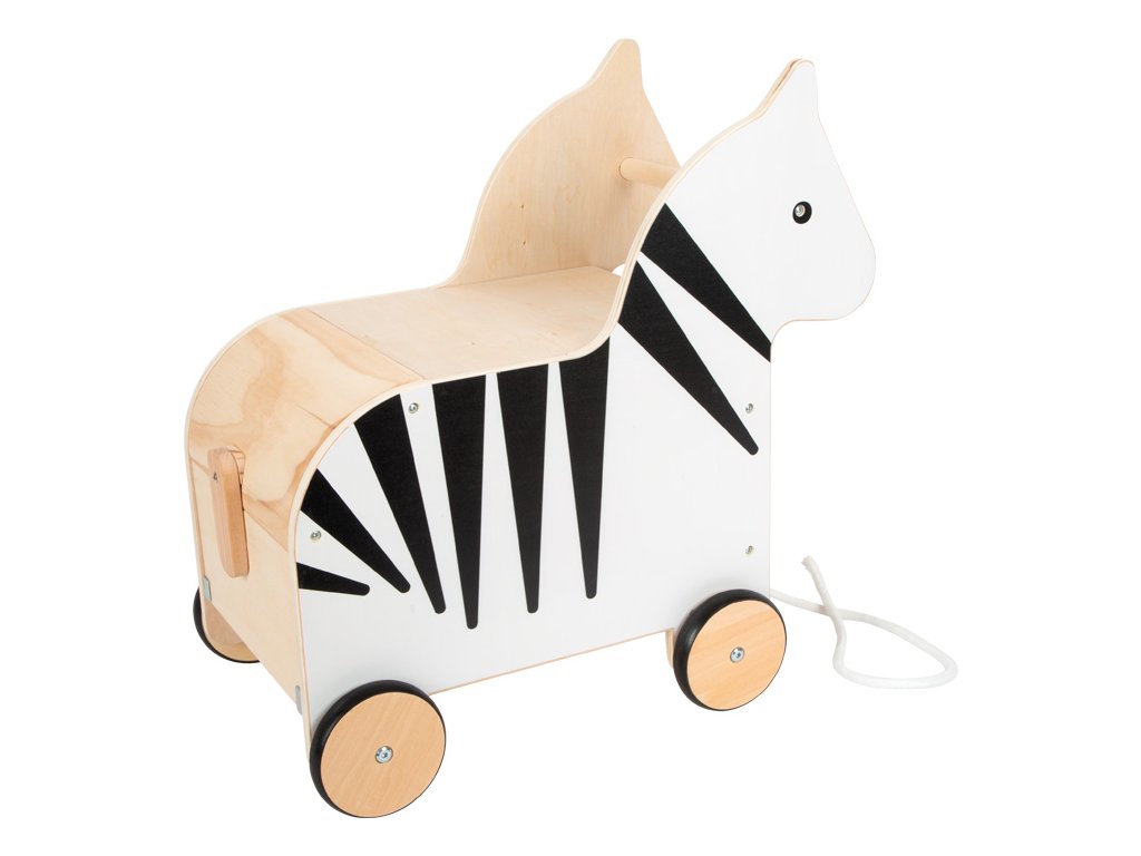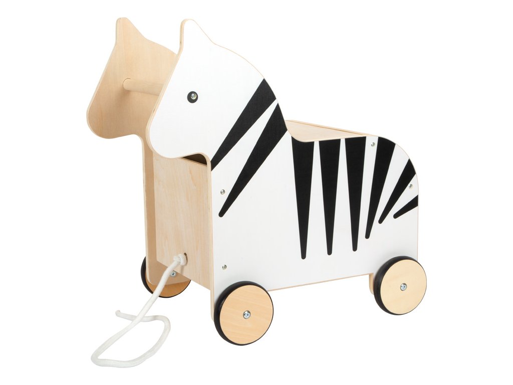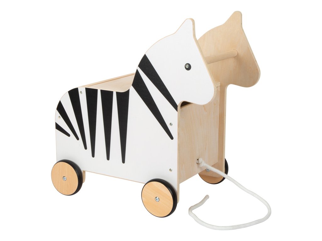 Ahoj, zebro! Tento úložný box z robustního dřeva je praktickým organizérem, který uvnitř nabízí nejen velkorysý úložný prostor pro hračky a další věci, ale také spoustu zábavy při hraní. Dá se tlačit za rukojeť hlavy zebry anebo tahat za šňůrku. Odnímatelné víko umožňuje snadné uzavření úložného prostoru shora. V přední části je integrovaná ochrana proti přiskřípnutí prstíků a v zadní část boxu na hračky má klapku, která se otevírá a zavírá ocasem zebry. Zebra má pogumovaná kolečka pro tichou a bezpečnou jízdu. Díky atraktivnímu designu, decentnímu potisku zebry je pojízdný box na hračky praktickým a stylovým doplňkem každého dětského pokoje. Hlavní vlastnosti: box je bezpečný, multifunkční pogumovaná kolečka atraktivní design