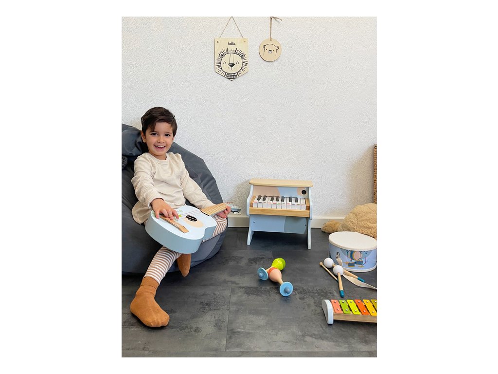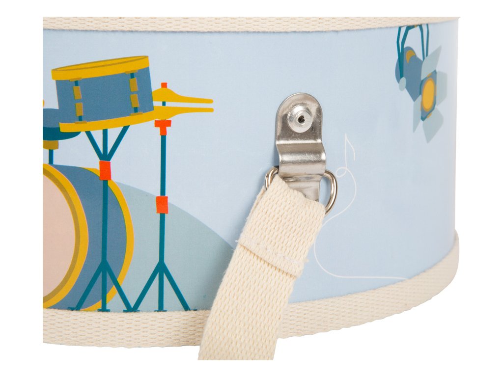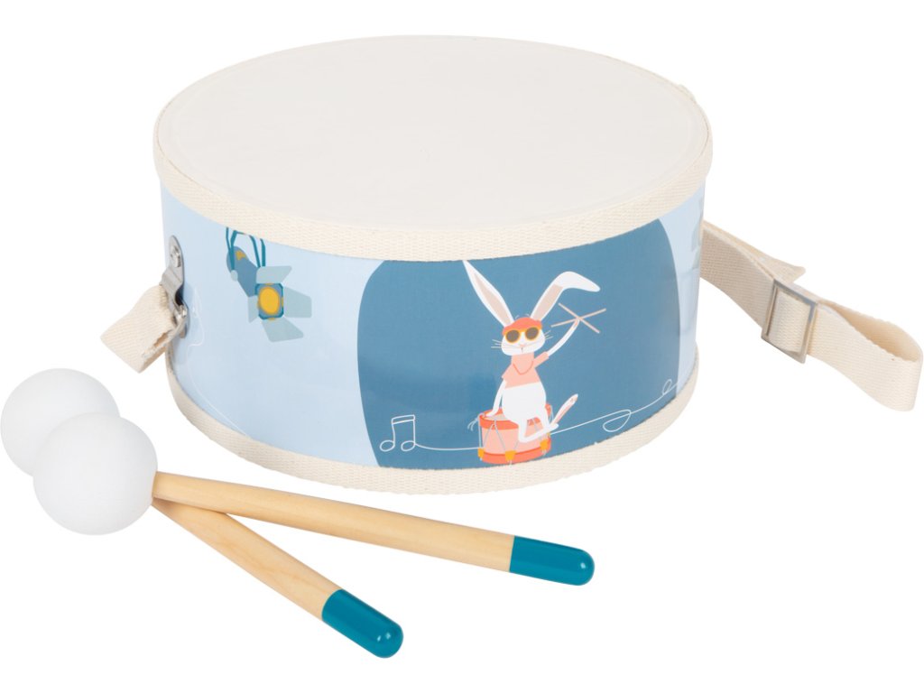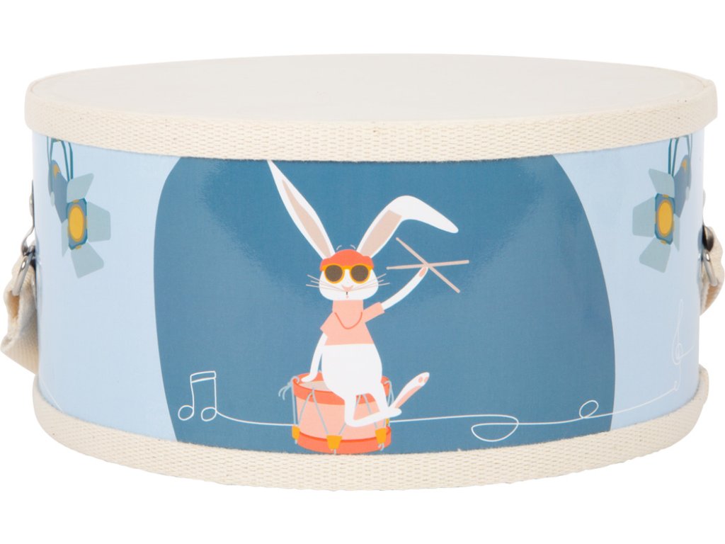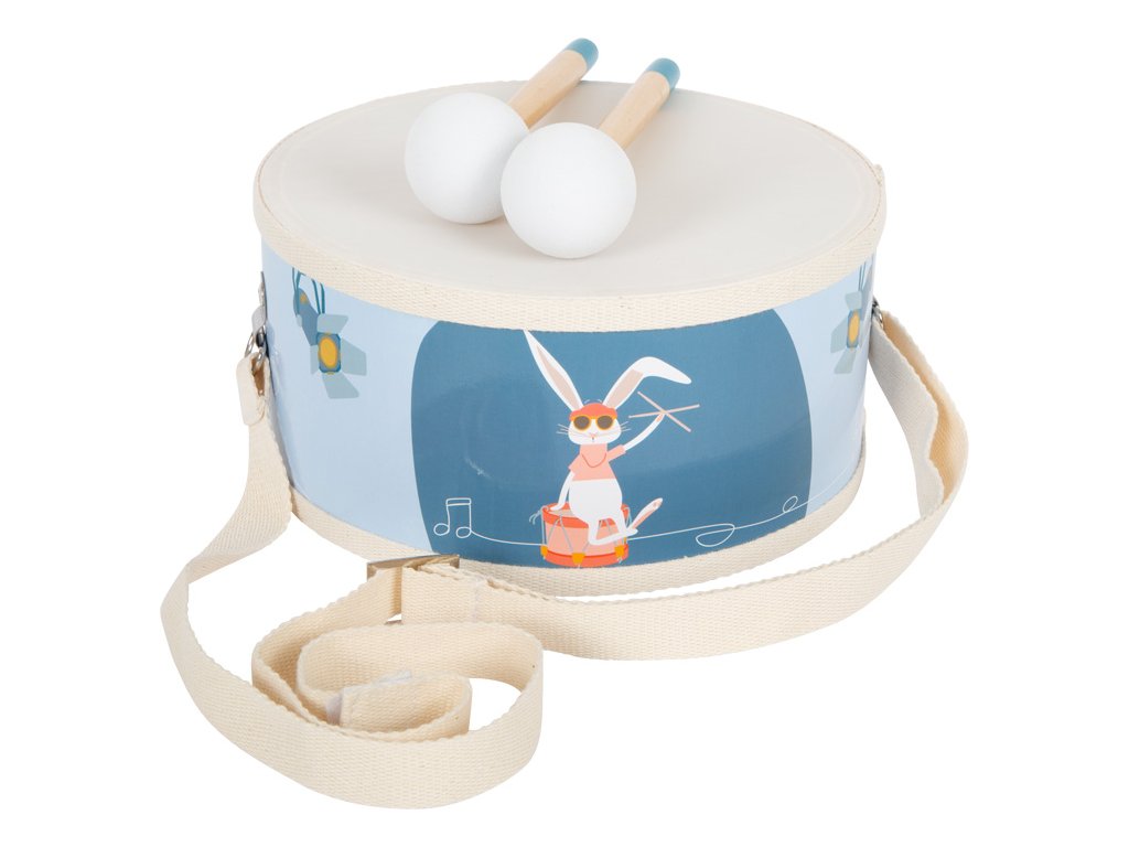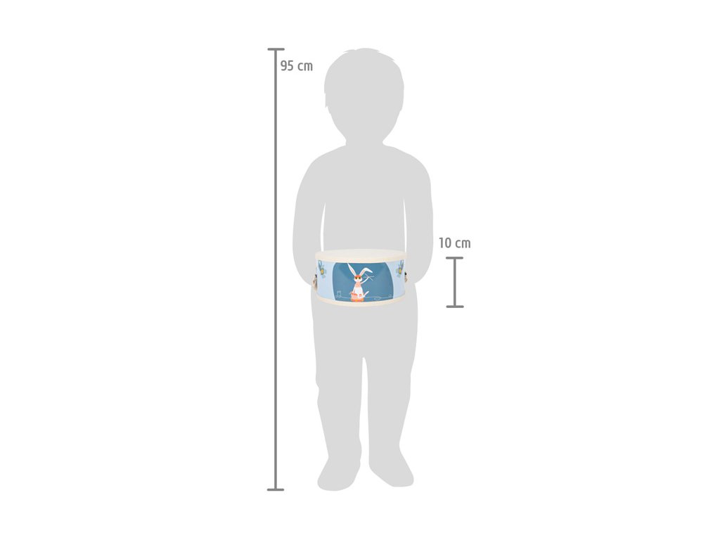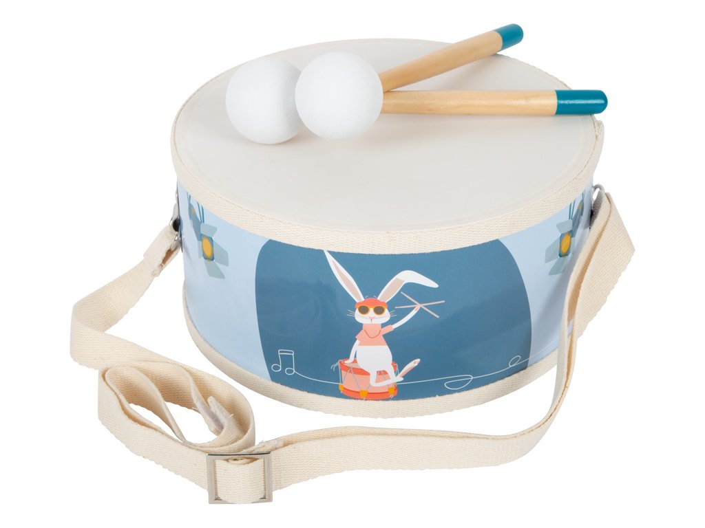S tímto dětským bubnem budou dobře vybaveni všichni mladí, začínající bubeníci, protože spolu s oblíbeným zajícem má co nabídnout uším publika! Bavlněný pásek bubnu lze nastavit na libovolnou délku pomocí kovové přezky. Paličky jsou opatřeny zvukově tlumicími kryty, aby to v dětském pokoji nebylo příliš hlučné. Díky kombinaci přírodního dřeva a moderních kontrastních barev je to absolutní hit pro mladé hudebníky! Tento dětský bubínek hravě trénuje smysl pro rytmus a rytmiku a také koordinaci ruka-oko. Je ideální pro ranou hudební výchovu! Hlavní vlastnosti: Rozvíjí jemnou motoriku a kreativituHravý úvod do světa zvuku a rytmuNastavitelný a odjímatelný pásek bubánkuPaličky opatřeny tlumícími kryty