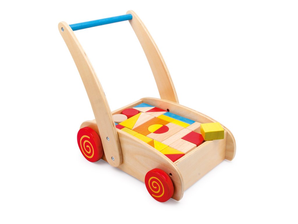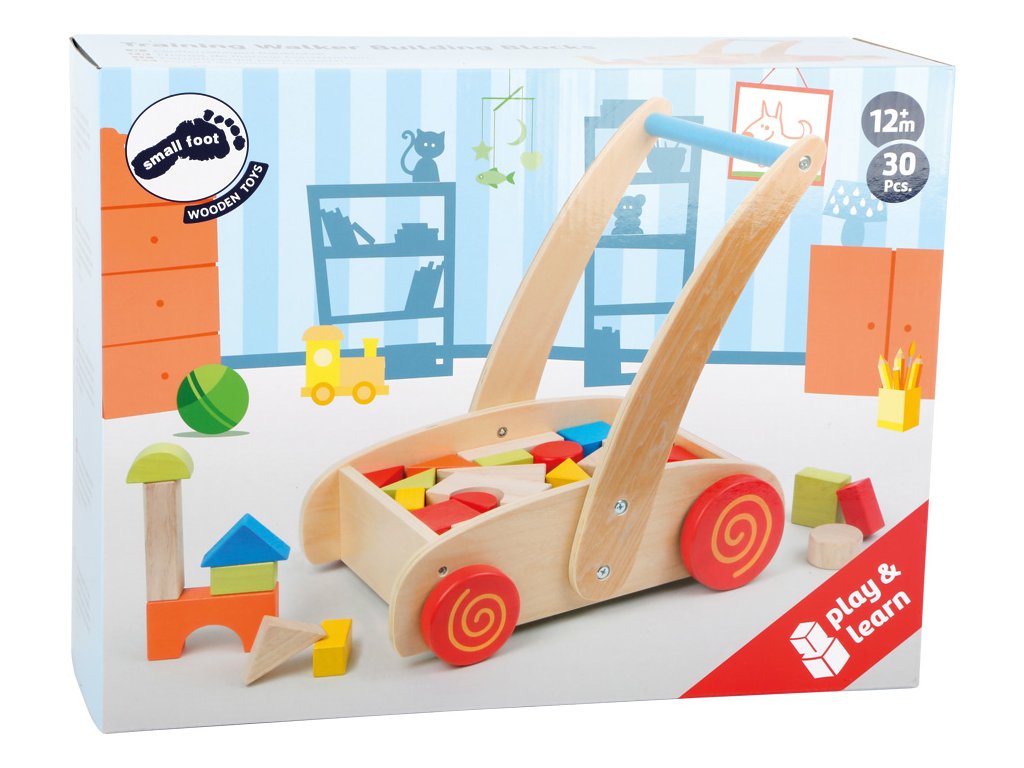 Toto stabilní chodítko je vyrobeno z masivního dřeva a překližky. Různě tvarované kostky (5 cm až 10 cm) jsou vyrobeny z bukového dřeva. Trénuje smysl pro rovnováhu a poskytuje hravou podporu při učení chůze. Rozvíjí motoriku, rozpoznávání barev barev a tvarů. Hrany jsou hladké, zaoblené pro větší bezpečnost. Hlavní vlastnosti: rozvíjí motorikutrénuje smysl pro rovnováhu a rozpoznávání barev a tvarůposkytuje hravou podporu při učení chůze