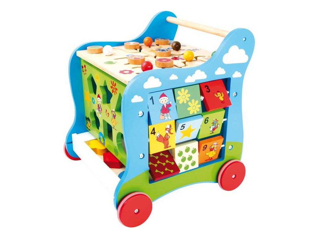 Opravdu všestranné je toto barevné chodítko s legračními vzory Sandmanna! Děti s ním zažijí své první krůčky. Na každé straně je co objevit a také se něco naučit. Odklápěcí číslice, hodiny s pohyblivými ručičkami, rozpoznávání tvarů, pohyblivý labyrint, tabule na malování a psaní. V chodítku je i dostatek místa na např. přepravu hraček. Jezdí na tichých pryžových kolečkách pro tichý chod. Hlavní vlastnosti: stabilní chodítkohravý design s motivem Sandmannapogumovaná kolečka pro tichou a bezpečnou jízduúložný prostor pod odklopnou deskourůzné aktivity rozvíjí motoriku