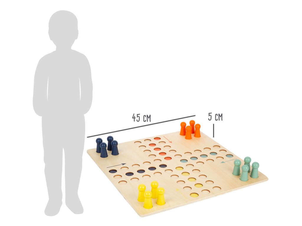 Člověče, nezlob se v extra velkém formátu! Tato klasická dřevěná hra, ve které musíte jako první dostat všechny figurky do domečku je velmi napínavá. Herní deska byla vytvořena hlavně pro hráče s malýma, nejistýma rukama. Kulaté zářezy zajišťují, že herní figurky pevně stojí. Kostka a 16 figurek jsou zabalené v textilním pytlíku. Figurky jsou oranžové, žluté, modré a mátově zelené, můžete si tak vybrat svou oblíbenou barvu. Děti se také naučí počítat hravým způsobem. Hlavní vlastnosti: velkoformátové provedenízářezy v herní desce dovolují hrát i hráčům s „nejistýma“ rukama (děti a senioři)rozvíjí logické myšlení klasická hra vyrobena ze dřeva v moderním designu