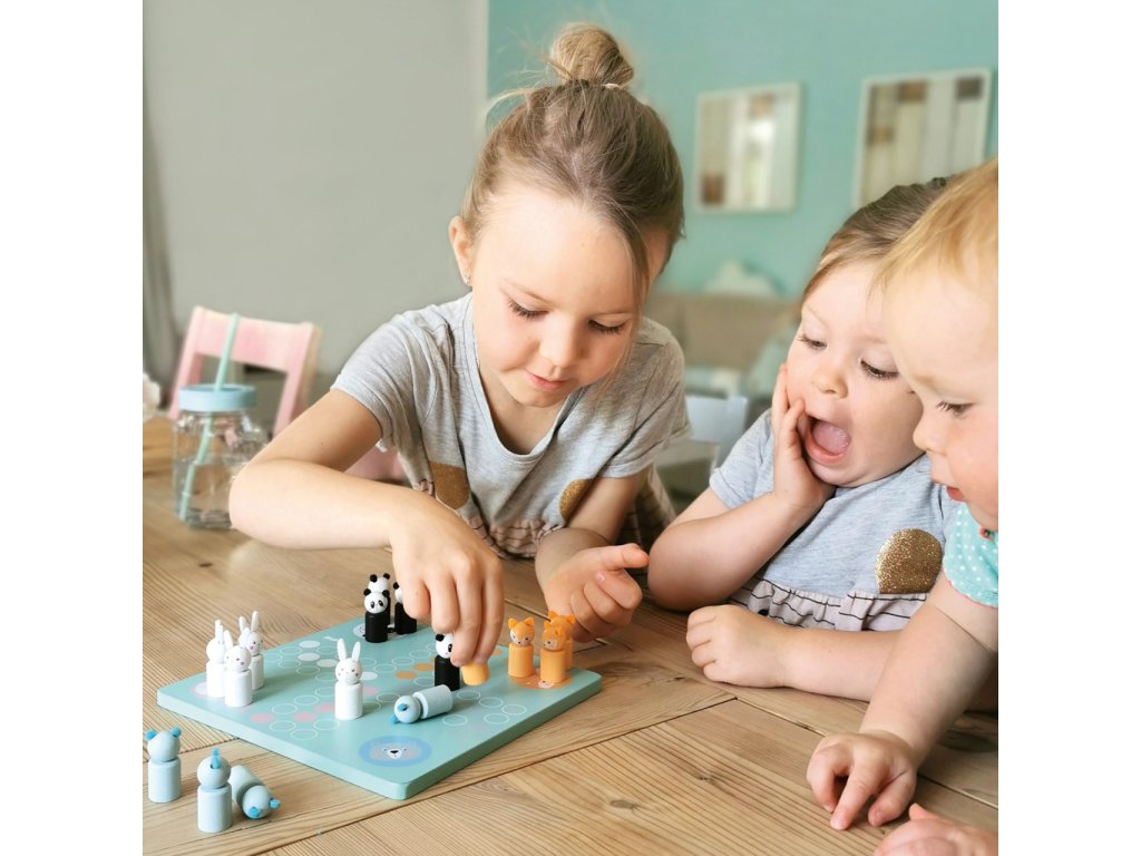 Které zvířátko se jako první dostane do svého domečku? Vyzkoušejte šikovnou hru v pastelových barvách s dřevěnými figurkami ve tvaru zajíce, pandy, medvěda a lišky. Hod kostkou udává, kolik kroků může daná figurka udělat. Vzrušující kompaktní společenská hra v moderních barvách. Hlavní vlastnosti: rozvíjí logické myšlení dětíklasická hra vyrobena ze dřeva v moderním designuideální společník na cestách