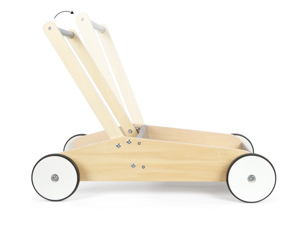 Ideální společník pro procházky i hraní. Toto dětské chodítko není jen hračka, ale také perfektní společník pro první krůčky malých dobrodruhů. Díky kombinaci přírodního dřeva a výrazné barvě břidlicově šedé je také opravdovým poutačem pro oči v každé školce či pokojíčku. Vyrobeno je z vysoce kvalitního dřeva. Je pevné a praktické, s velkou úložnou plochou, která nabízí dostatek prostoru pro hračky, které doprovázejí Vaše dítě při jeho prvních krůčcích. Díky integrovanému brzdnému systému je manipulace s dětským chodítkem vždy bezpečná a přizpůsobí se vývoji a schopnostem dítěte při chůzi. Díky zaobleným hranám je i bezpečné. Pogumovaná kolečka jsou velmi tichá a také bezpečná. Chodítko má dvě výškově nastavitelné úrovně rukojeti a je tak ideální pro malé i velké děti, a může růst s nimi. Chodítko je vyrobené z laminovaného dřeva. Robustní a stabilní konstrukce pomůže dětem při jejich prvních krůčcích. Chodítko je nejen dokonalou pomůckou pro první krůčky miminka, ale také cvičební pomůckou smyslu pro rovnováhu. Dětská chodítka umožňují dětem hravou formou prozkoumávat své okolí a postupně rozšiřovat rozsah pohybu. Hlavní vlastnosti: ideální společník pro první krůčky Vaší ratolestirobustní konstrukce s brzdovým systémempraktický úložný prostorpogumovaná kola pro tiché a bezpečné ježděnívýškově nastavitelná rukojeť