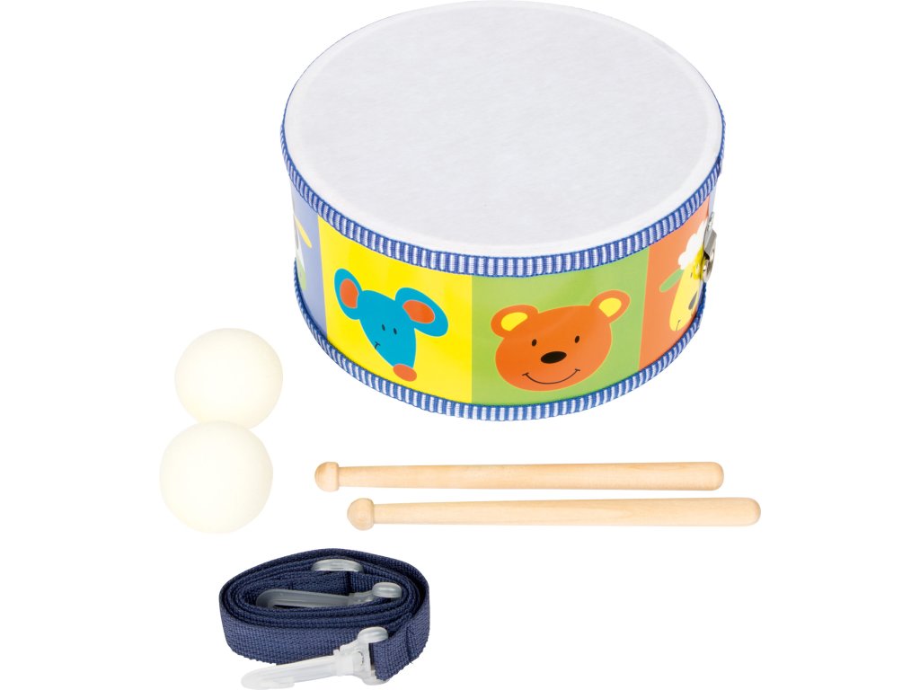 Pohádkově barevný buben s roztomilými zvířecími hlavami zve k veselé vzpouře v dětském pokoji! To není hluk, to je hudba a radost z pohybu na celé čáře! Zde si mohou děti procvičit motoriku, vyřádit se a probudit zájem o hudbu! Včetně nastavitelného popruhu s 2 karabinkami a 2 bubínkovými paličkami (délka: cca 18 cm). Hlavní vlastnosti: trénuje motoriku dětínastavitelný popruh