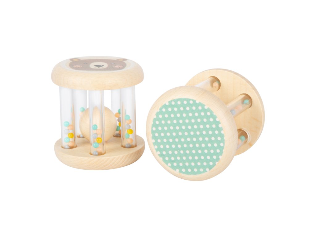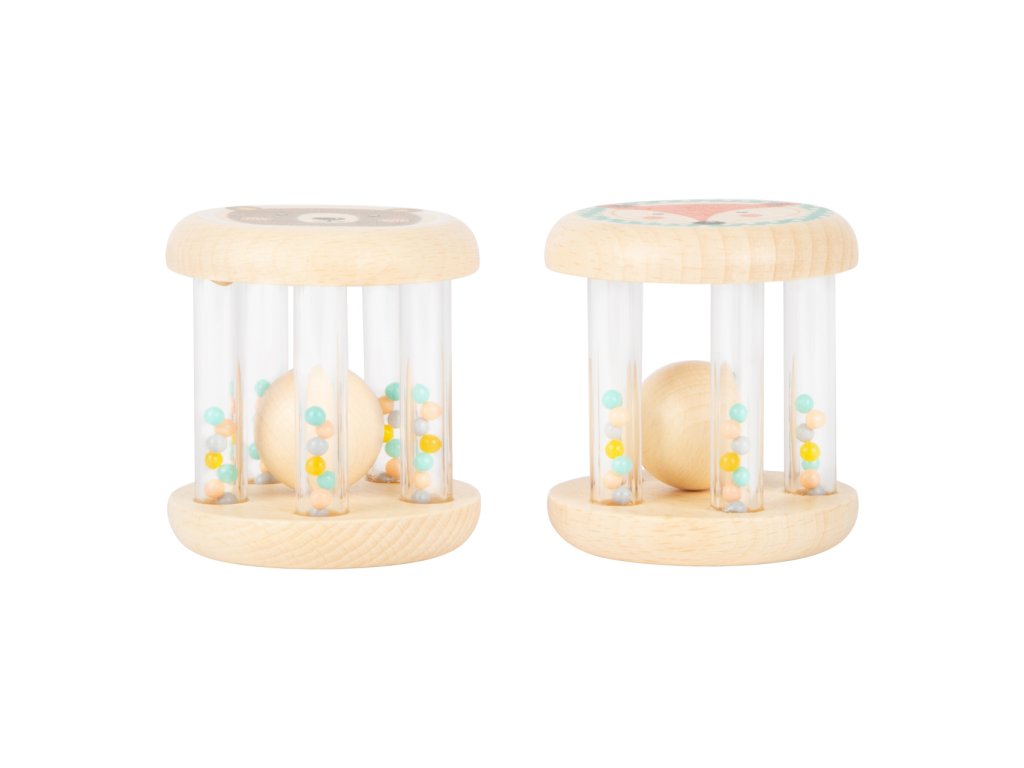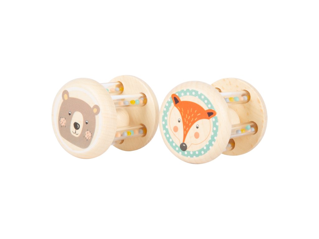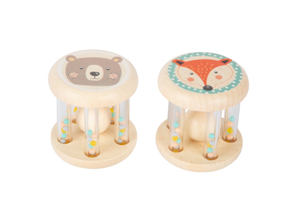 Hmatání, kutálení, chrastění! Dřevěné chrastítko s dřevěnou kuličkou uprostřed, kterou drží průhledné trubičky, ve kterých jsou barevné korálky. Požitek pro oči i uši! Ideální hračka v sadě 2 ks, rozvíjí motorické dovednosti a smyslové vnímání dětí. Pro děti jednoduše uchopitelné. Hračka z přírodního dřeva s pastelovým potiskem zvířete. Hlavní vlastnosti Přírodní barva s pastelovým potiskemOriginální designRozvíjí motoriku a smyslové vnímání dětí