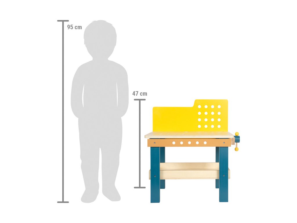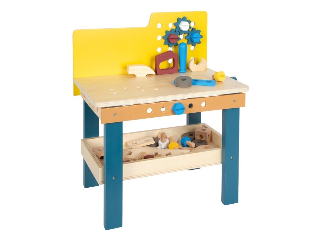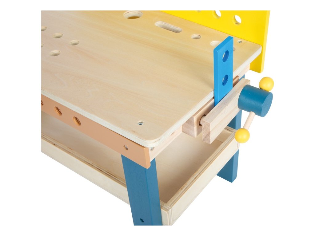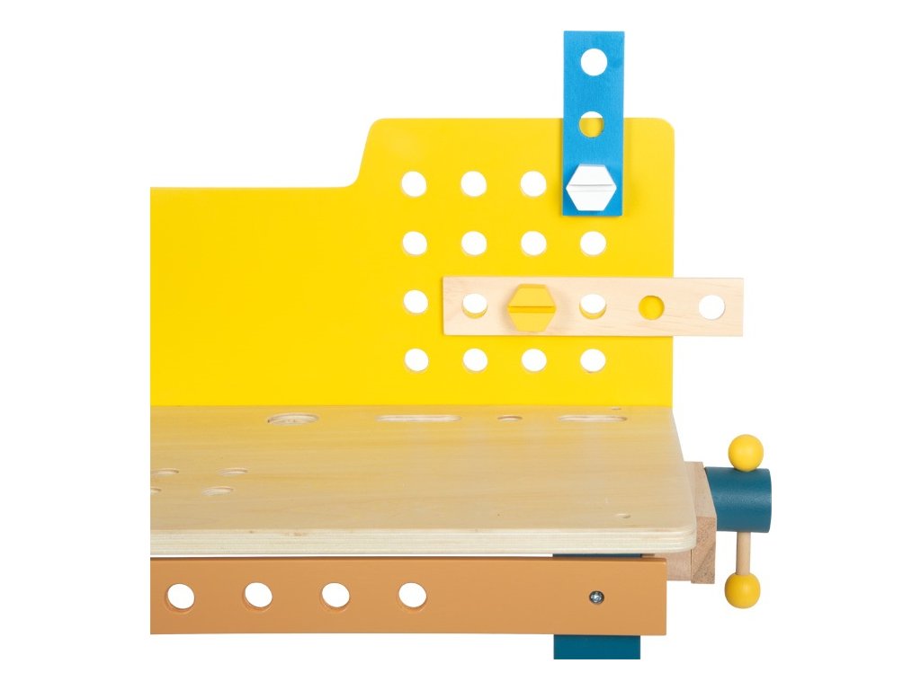 V dílně je pořád tolik práce! S tímto kompaktním pracovním stolem s integrovaným svěrákem a úložným prostorem mohou děti otestovat své šikovné ručičky při zatloukání, řezání a šroubovávání šroubů. Realisticky navržené příslušenství a nářadí včetně kladívka, klíče, šroubováku, svěráku a pilky přinášejí zábavu při hraní a motivují děti ke kreativitě a fantazii. Velké množství příslušenství sestávající ze šroubů, matic, ozubených kol, sady podložek a perforovaných destiček v různých tvarech a velikostech umožňuje dětem vytvořit si vlastní projekty nebo postavit malé závodní auto dle přiloženého návodu.Otvory na přední a zadní straně a také na pracovní desce lze použít k připevnění příslušenství k pracovnímu stolu pomocí šroubů. Hraním s nářadím a díky kutilství děti trénují motorické dovednosti a koordinaci ruka-oko, hravou formou se učí používat nástroje a získávají manuální zručnost. Sada obsahuje: pracovní stůl se svěrákem, kladívko, klíč, šroubovák, pilku, 2 velké perforované destičky, 1 střední perforovanou destičku, 2 malé perforované destičky, 2 perforované destičky ve tvaru diamantu, 2 čtvercové perforované destičky, 9 šroubů, 3 hřebíky, 6 matic, 3 ozubená kola, 2 tenké podložky a 4 silné podložky. Hlavní vlastnosti: učí děti používat nářadítrénuje jemnou a hrubou motorikurozvíjí koordinaci ruka-oko a manuální zručnostskvělý doplněk k dalším produktům řady Nordic a Miniwob Dokumentace: návod k sestavení (DE, EN, FR, IT, ES)návod k sestavení - auto