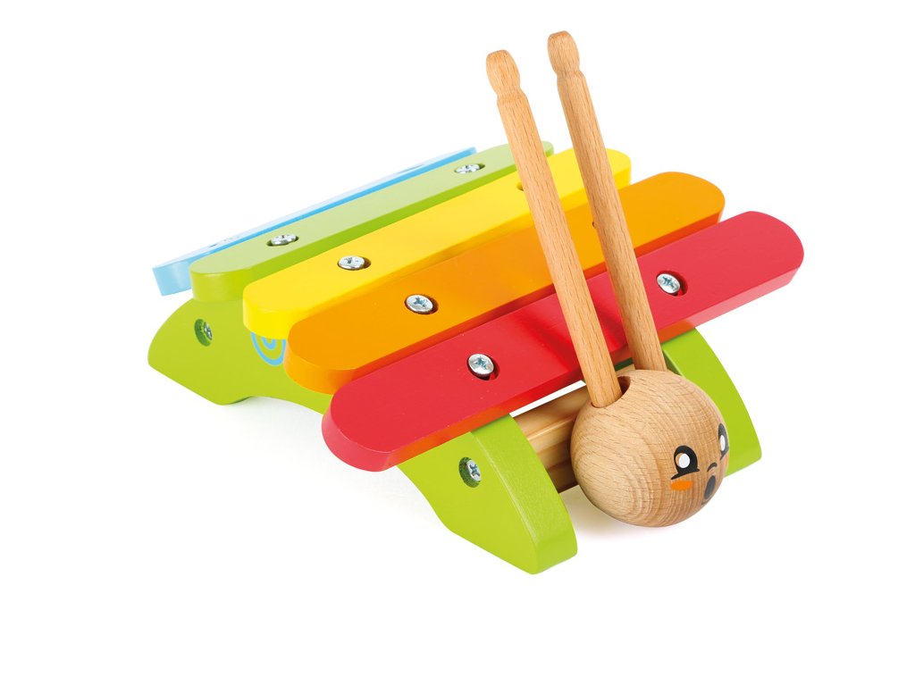 Hrátky plné zvuků přináší tento malý šnek se svými 5 ladícími dřívky. Šnečí tykadla (14 cm) slouží jako paličky. Dětské ručičky jsou stejně fascinované jako oči a uši. Hlavní vlastnosti: xylofon a 2 paličkyrobustní dřevěné provedeníprohlubuje lásku k hudbě a rytmikuvelikost pro nejmenší