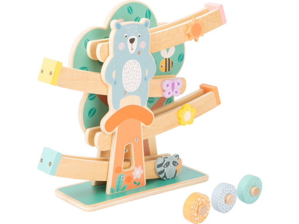 Rychlý sestup kouzelným lesem? Na této robustní dráze v pastelových tónech se po svahu zdobeném lesními obyvateli rozběhnou tři různá barevná dřevěná kola zdobená moderními vzory. Obzvláště stabilní se širokou základnou. Hlavní vlastnosti: dřevěná hračkapastelové barvyrozvíjí zručnost dětí