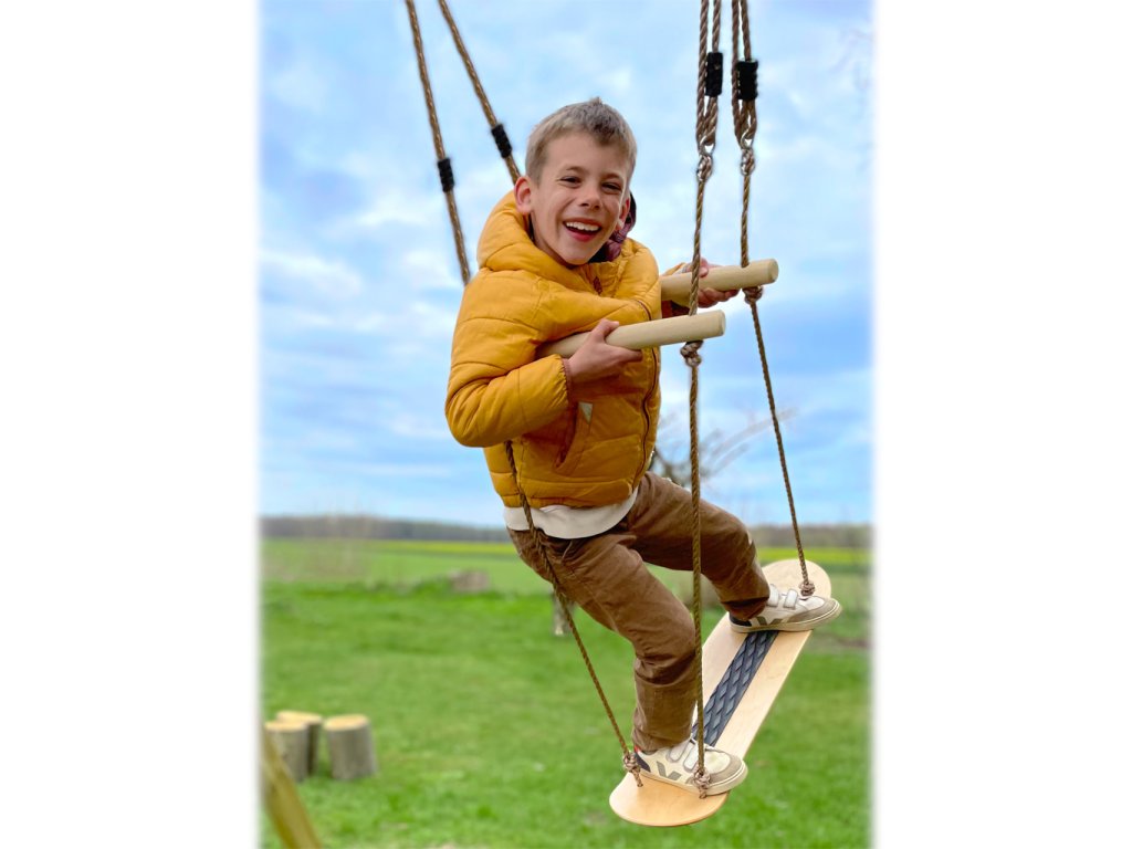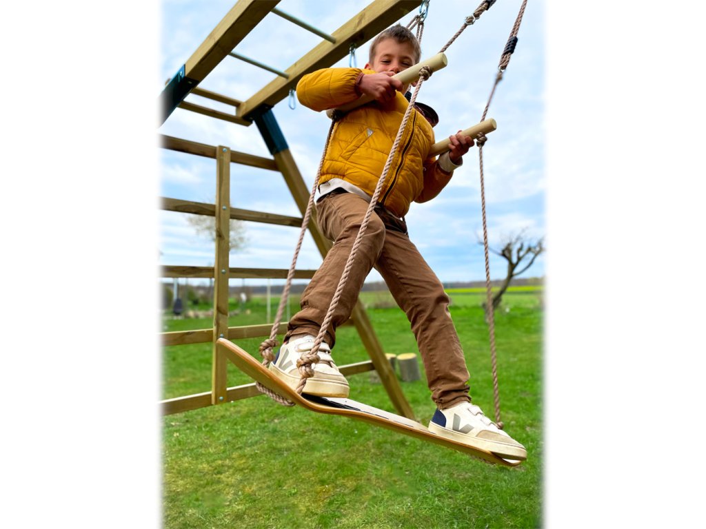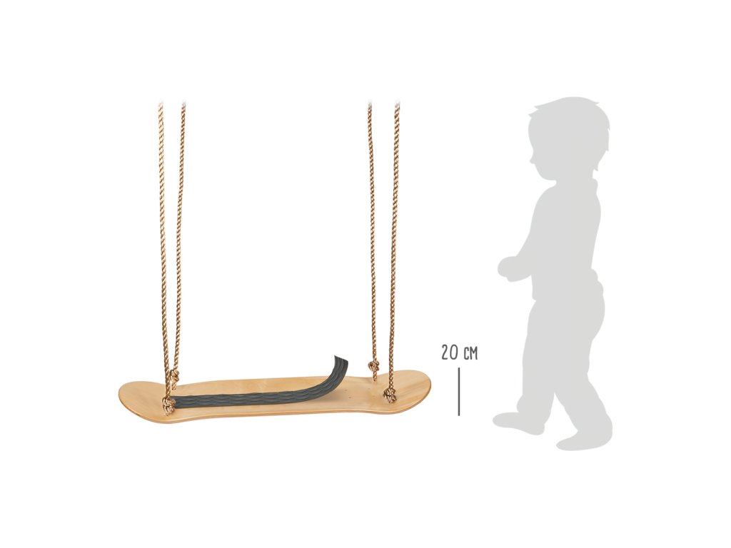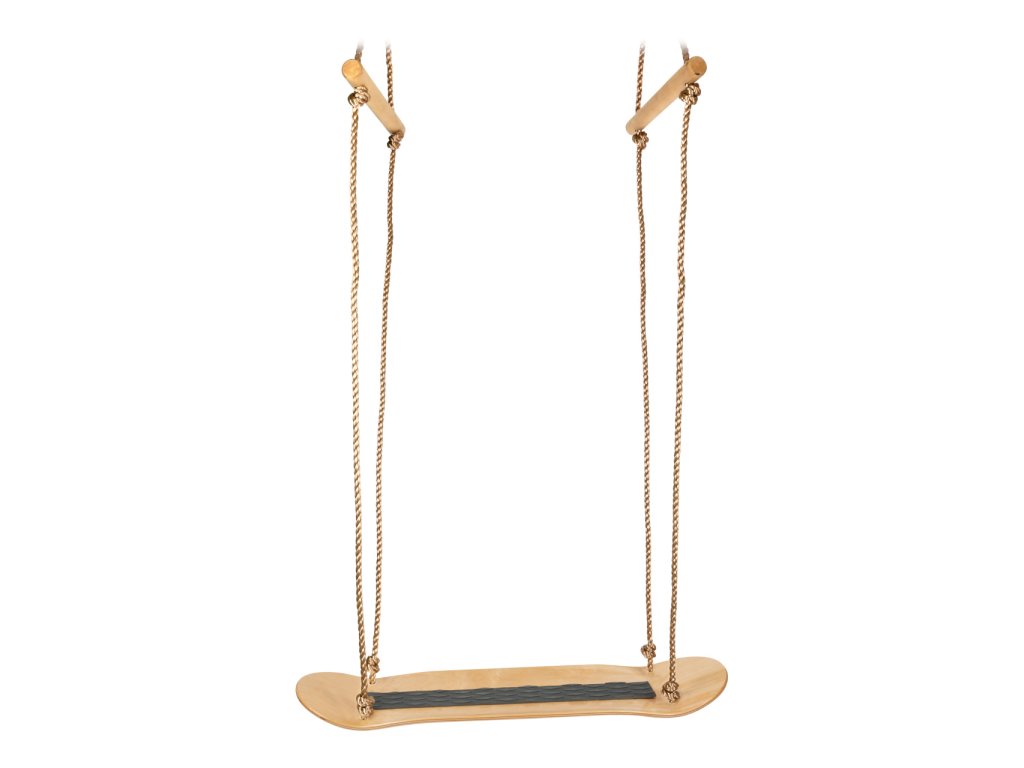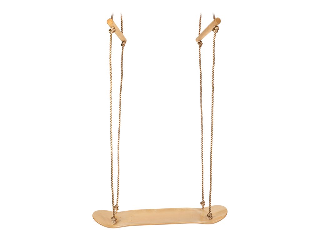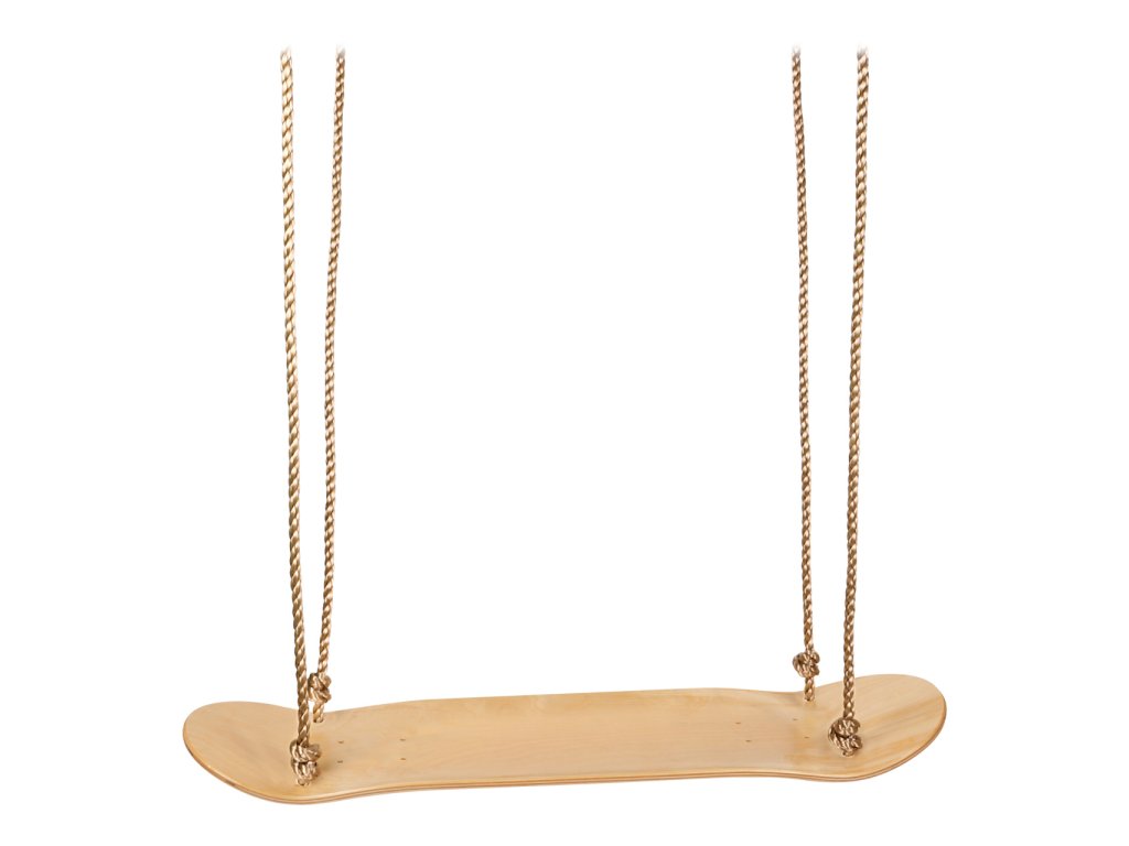 Houpejte se jako šampioni v netradičních sportech, na prkně připomínajícím skateboard! Děti na něm mohou nejen sedět, ale i stát jako na skutečném skateboardu! K ruce je jim přitom dvojice madel, jejichž výšku lze na laně snadno upravit. Součástí balení je také protiskluzová samolepka pro ještě větší jistotu při houpání ve stoje. Prkno je vyrobeno ze silné překližky a spolu s robustními madly z masivního dřeva je zavěšeno na vysoce odolných a poddajných nylonových lanech. Délku lan lze kdykoli snadno upravit pomocí kovových průvleků, na koncích jsou opatřena kovovými kroužky a bezpečnostními karabinami k zavěšení. Hlavní vlastnosti: madla a protiskluzová samolepka pro větší bezpečnostjednoduché nastavení délky lan a polohy madelnosnost 100 kgodolné provedení