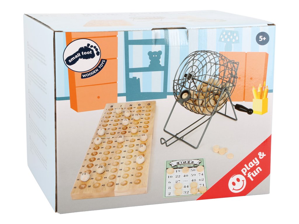 Bingo! Realistická hra bingo, kterou můžou hrát 1-4 hráči. Pravidla jsou stejná jako pro profesionály, výherní čísla se losují z kovového bubnu. Hra obsahuje 24 hracích karet, 75 dřevěných kuliček s čísly, 150 dřevěných krycích koleček a jednu hrací desku vyrobenou z velmi kvalitního dřeva, která je skládací. Otočte klikou a jedeme! Bingo je velmi jednoduché na vysvětlení a okamžitě hratelné. Hlavní vlastnosti: podporuje v rozvoji soustředění a komunikačních dovednostíoblíbená loterijní hra pro celou rodinu praktický úložný, textilní pytlíkflexibilní počet hráčů