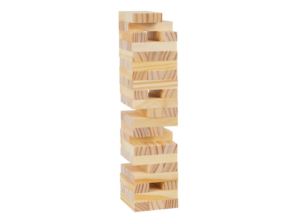 Tady budete potřebovat opravdu pevné nervy, populární hra zručnosti je vyrobena z přírodního dřeva. Cílem hry je opatrně odstranit z věže dřevěné dílky bez toho, aby věž spadla. Kdo má nejpevnější ruku? Trénuje koordinaci ruka-oko a soustředěnost. Výborná hra pro celou rodinu. Hlavní vlastnosti: přírodní dřevotrénuje soustředěnosti, koordinaci ruka-oko