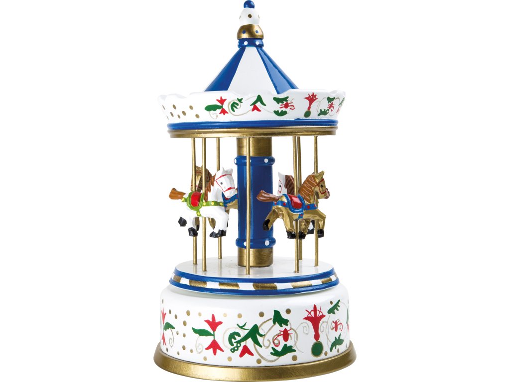 Krásná pestrobarevná hrací skříňka jako kolotoč, kde se 4 koně otáčí do melodie skladby „Love Story“. Cítíte tu vůni pečených mandlí, cukrové vaty a hudbu kolotočů? Hlavní vlastnosti: děti si tuto hračku jistě zamilují krásný doplněk do herny nebo dětského pokojepodporuje děti v kreativním a představivém hranídpovídá evropské bezbečnostní normě