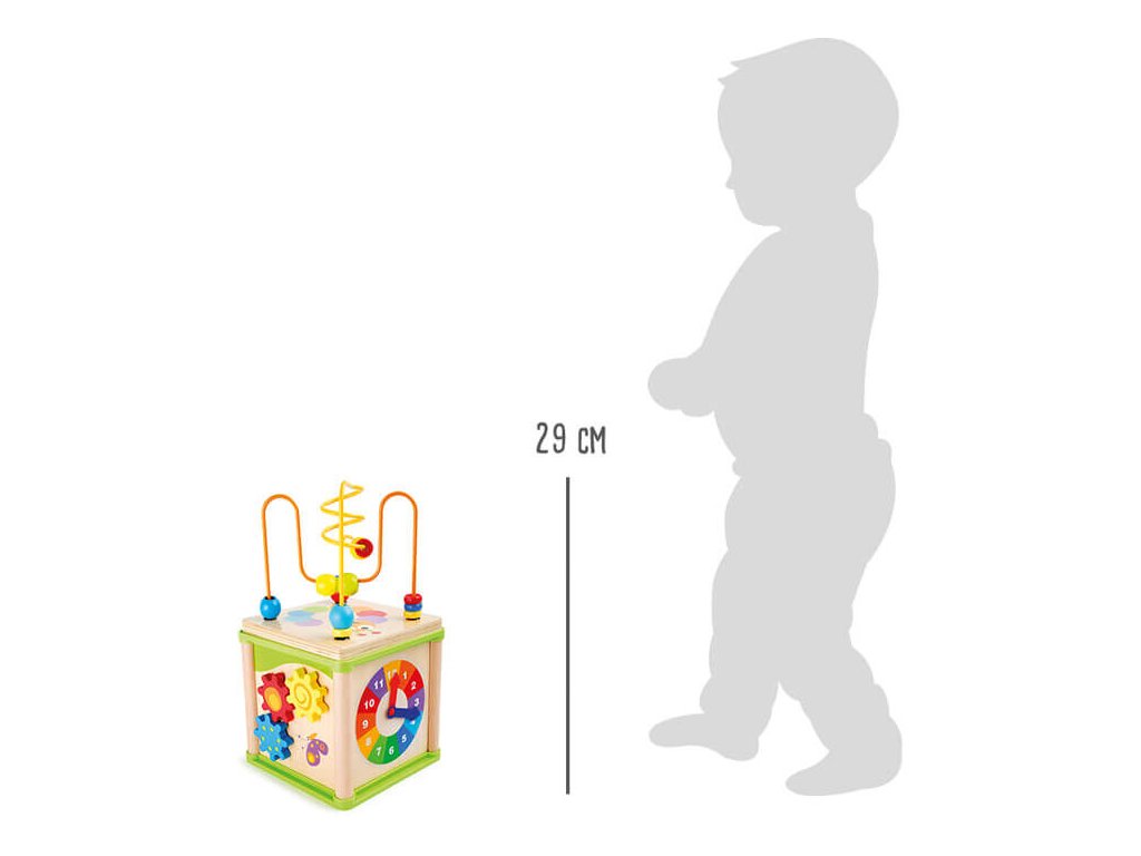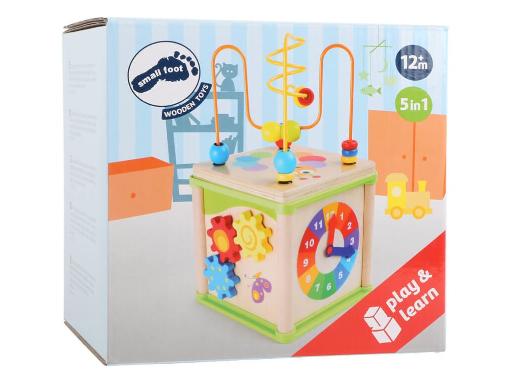 Pokud nemáte ve své herně mnoho místa a není v ní prostor na hraní, je tato multifunkční motorická kostka ideální. S oddělitelným labyrintem, ozubenými kolečky, hodinami a logickou hrou děti hravě trénují jemné motorické dovednosti a jejich soustředění. Hlavní vlastnosti: odnímatelná vrchní část kostky s kovovým labyrintemkompaktní rozměryrozvíjí motoriku dětíveselý barevný design