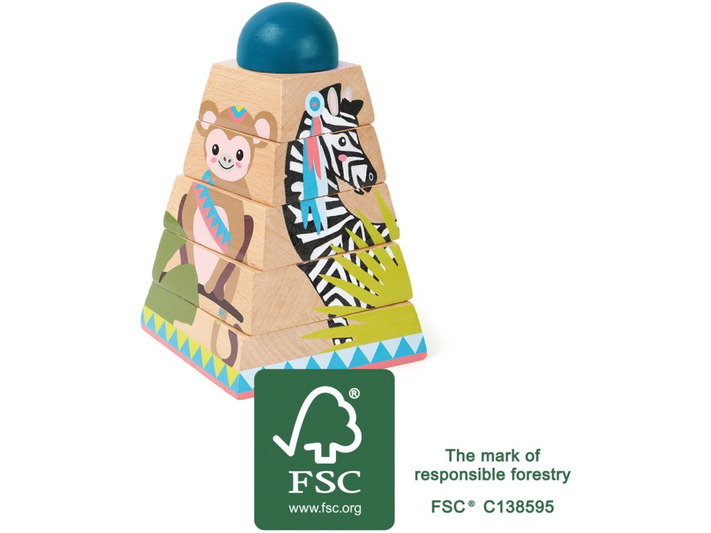 Na této nasazovací věži si děti procvičí svou zručnost. Kostky z přírodního 100% certifikovaného FSC® dřeva mají krásný barevný potisk, dále také potrénují prostorovou představivost dětí. Dokáží děti postavit věž správně, aby na každé straně byl daný obrázek? Barevná hračka, která trénuje motoriku dětí. Hlavní vlastnosti: 100% FSC dřevotrénuje motoriku a prostorovou představivost Značka a certifikát FSC® (Forest Stewardship Council) zaručuje, že dřevo, ze kterého byl produkt vyroben, nebylo vytěženo nelegálně a pochází z lesů obhospodařovaných šetrným či přírodě blízkým způsobem, ve kterém jsou dodržovány přísné environmentální a sociální požadavky. Značka FSC® na výrobku znamená, že svým nákupem pomáháte chránit lesy a podporujete šetrné, odpovědné či přírodě blízké hospodaření, díky kterému jsou naše lesy stabilnější, zdravější, mají přirozenou druhovou skladbu a lépe odolávají negativním následkům klimatických změn.