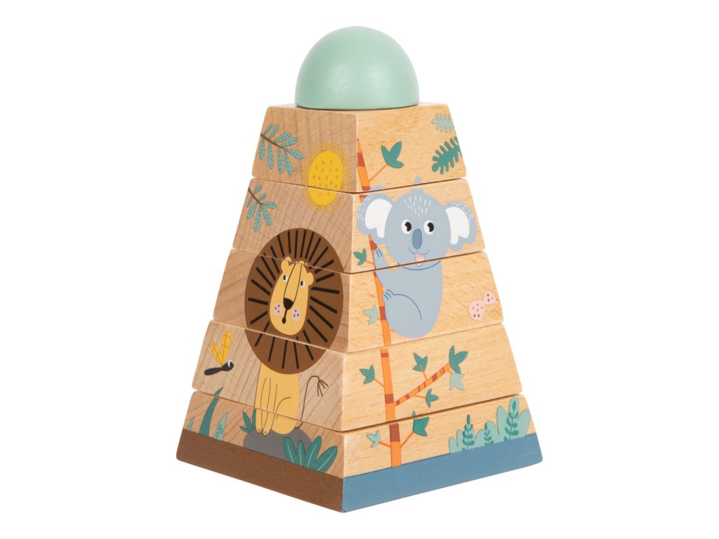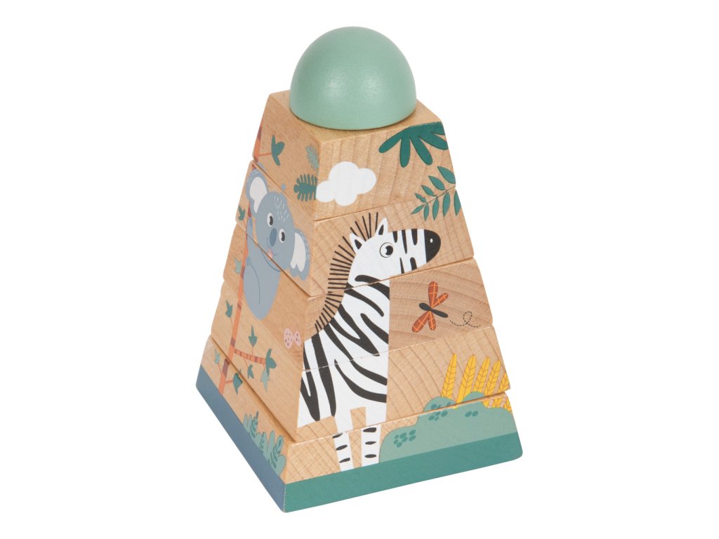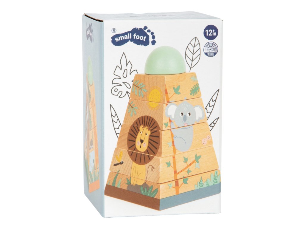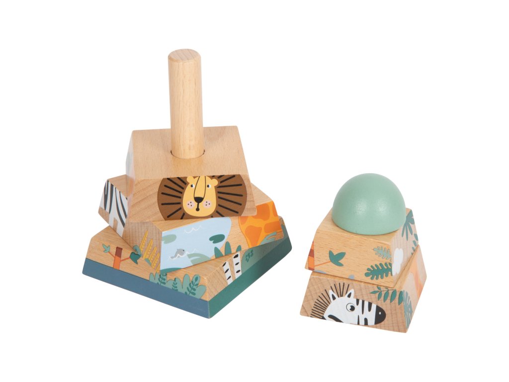 Tato hračka z robustního dřeva je navržena tak, aby rozvíjela jemnou motoriku a prostorové vnímání dětí. Skládáním dřevěných bloků ve správném pořadí vznikne věž, která zobrazuje přátelská divoká zvířata, jako jsou žirafa, zebra a lev, kteří dětem se skládáním pomohou. Sestavení této šestidílné nasazovací věže trénuje koordinaci ruka-oko a odhad velikosti. Je to vzdělávací motorická aktivita a dovednostní hra pro nejmenší děti. Díky své originální barevností vkusně doplní a zútulní dětský pokojíček. Hlavní vlastnosti: nasazovací věž z robustního dřeva6 dílkůmoderní safari design s množstvím přírodního dřevarozvíjí zručnost a prostorovou představivostpři správném sestavení odhalí žirafu, zebru, koalu a lvatrénuje koordinaci ruka-oko a porozumění rozdílným velikostemedukativní motorická hračka