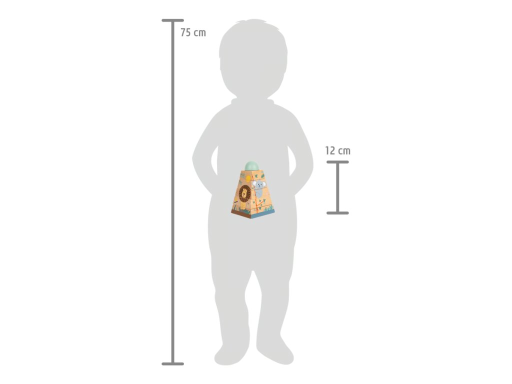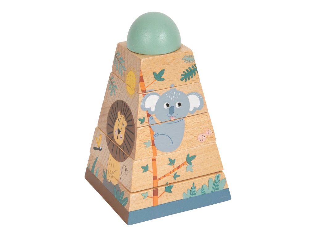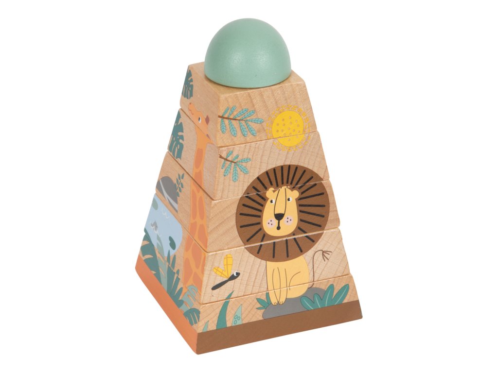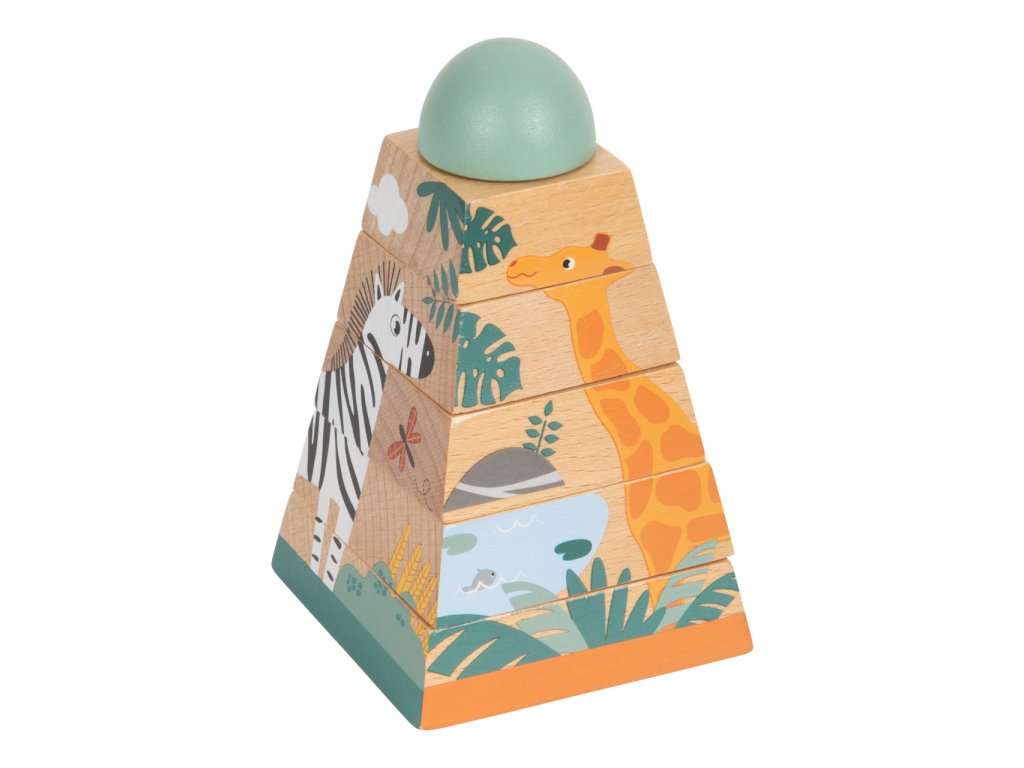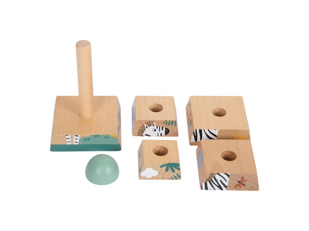Tato hračka z robustního dřeva je navržena tak, aby rozvíjela jemnou motoriku a prostorové vnímání dětí. Skládáním dřevěných bloků ve správném pořadí vznikne věž, která zobrazuje přátelská divoká zvířata, jako jsou žirafa, zebra a lev, kteří dětem se skládáním pomohou. Sestavení této šestidílné nasazovací věže trénuje koordinaci ruka-oko a odhad velikosti. Je to vzdělávací motorická aktivita a dovednostní hra pro nejmenší děti. Díky své originální barevností vkusně doplní a zútulní dětský pokojíček. Hlavní vlastnosti: nasazovací věž z robustního dřeva6 dílkůmoderní safari design s množstvím přírodního dřevarozvíjí zručnost a prostorovou představivostpři správném sestavení odhalí žirafu, zebru, koalu a lvatrénuje koordinaci ruka-oko a porozumění rozdílným velikostemedukativní motorická hračka
