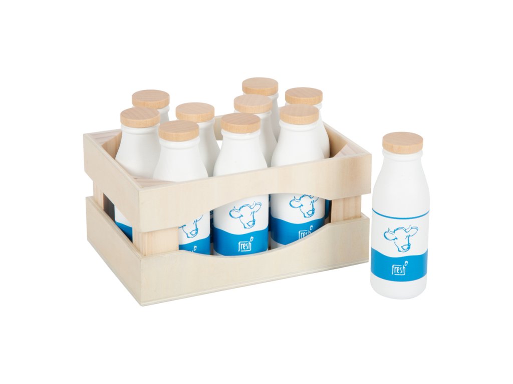 Co by to byl za dětský prodejní stánek bez mléka? Do robustní přepravky se vejde 10 lahví mléka, hračka je perfektní pro realistickou hru v kuchyňce nebo při prodeji. Díky jednoduchým ilustracím jí lehce porozumí i nejmladší děti.Děti si mohou nakoupit mléko v obchůdku a uvařit z něj jídlo. Hračka děti podpoří v hraní na role. V kombinaci s ostatními produkty z řady „Fresh“ si užijí opravdovou zábavu. Hlavní vlastnosti: robustní dřevěná přepravka s 10 dřevěnými láhvemi mlékaideální doplněk dětských kuchyněk a prodejních stánkůrealistická hračka, které jednoduše porozumí i nejmenší dětikompatibilní s dalšími produkty z řady „Fresh“