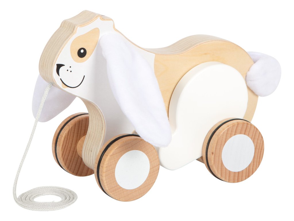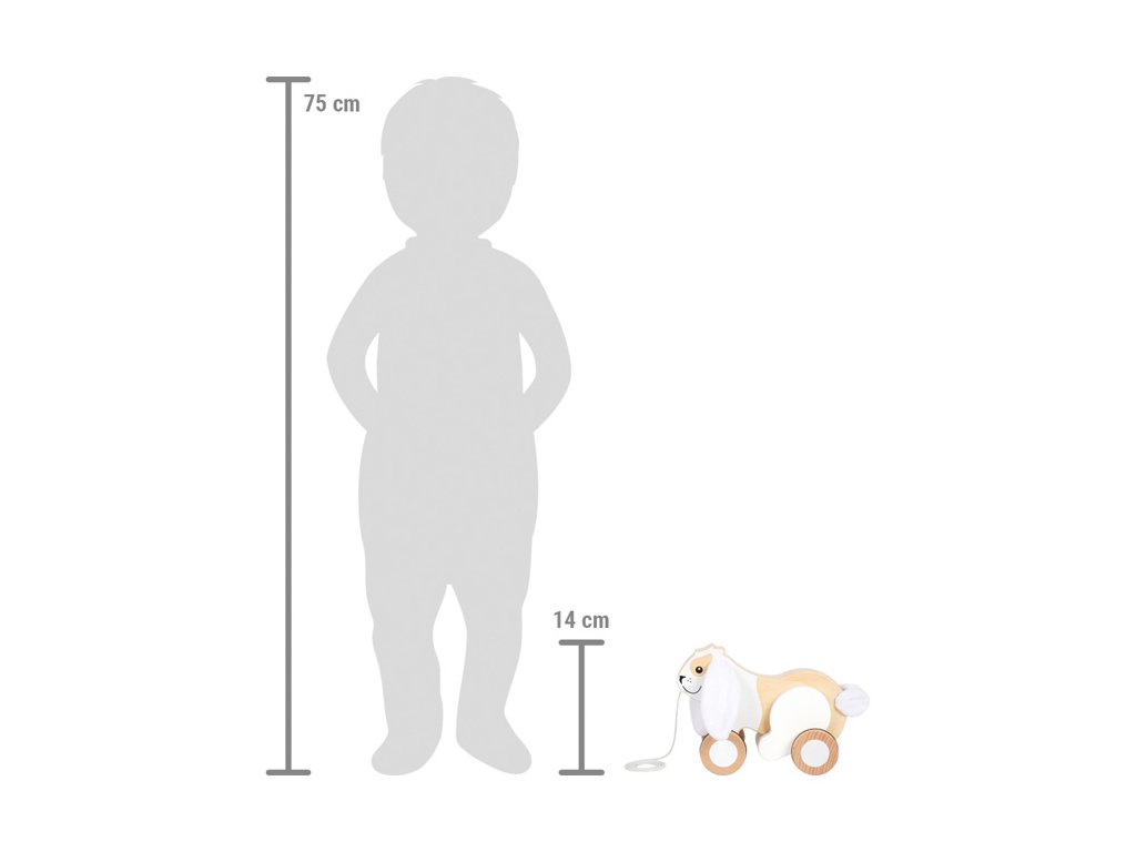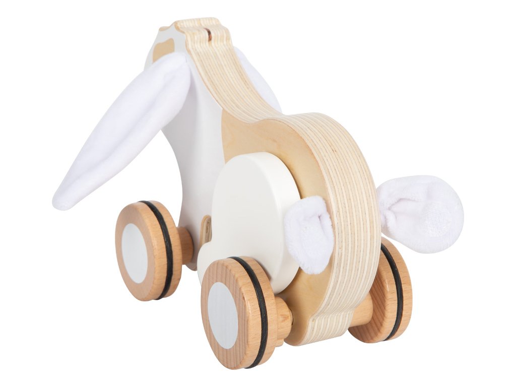Roztomilý zajíček s měkkými šustivými oušky a ocáskem vyrobený z vysoce kvalitního pevného dřeva se jistě stane nezapomenutelným kamarádem každého dítka při jeho prvních samostatných krůčcích. Dá se snadno táhnout na provázku a povzbuzuje malé děti k lezení a chůzi. Užijí si tak při procházkách spoustu zábavy. Pogumovaná kolečka napomáhají plynulé a tiché jízdě. Hračka podporuje rozvoj motorických dovedností, pohyblivosti a smyslového vnímání. Dlouhá šustivá ouška a ocásek lze snadno odebrat a vyprat. Hlavní vlastnosti: robustní provedeníodnímatelné měkké uši a ocásekse šňůrou dlouhou 60 cmpodporuje rovnováhu a koordinaci pohybůrozvíjí motorické dovednostis tichými pogumovanými kolečkyinspiruje dětskou kreativitu a představivost