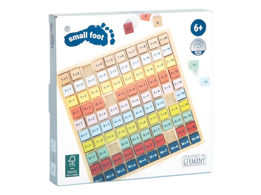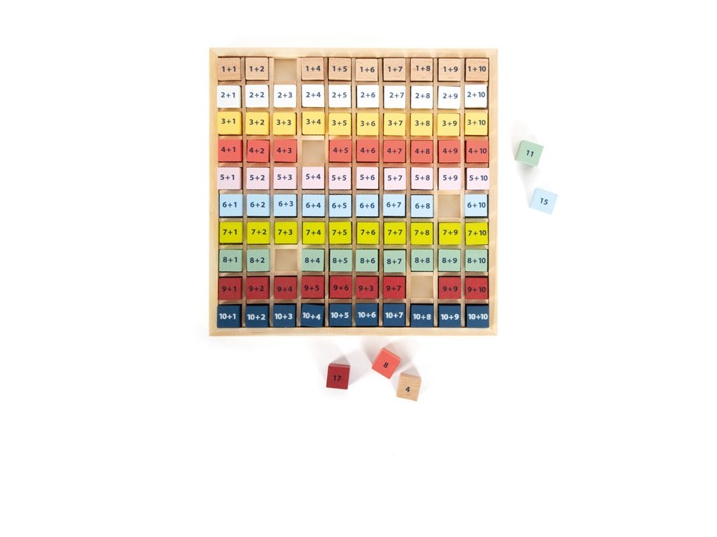 Barevná zábava s čísly podpoří děti v procvičování sčítání do 20. Na každé kostce je matematický problém s odpovídající odpovědí na druhé straně, takže děti mohou ovládat svůj přístup k řešení zcela samy. Umísťováním kostek do jejich slotů si dítě trénuje jemnou motoriku rukou. Pomůcka je vyrobená z robustního 100% FSC® certifikovaného, odolného dřeva. Svou velikostí a provedením je výborná na cestování. Skvěle hodí k dalším výukovým hrám z produktové řady „Educate“. Hlavní vlastnosti: barevné kostky100% FSC® dřevotrénuje jemnou motoriku rukouvhodná na cestování, nebo k zápisu do školy