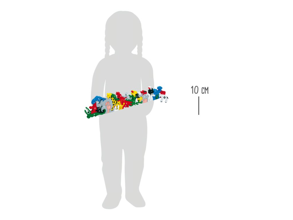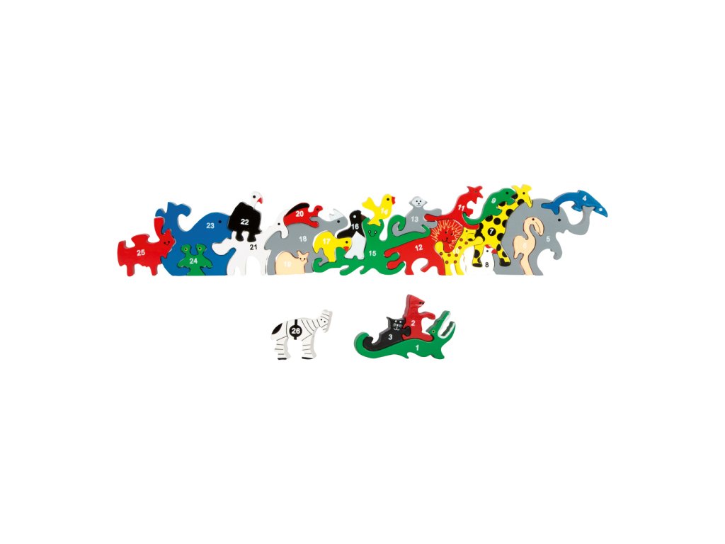 Kdo dokáže seřadit dřevěná zvířátka do správného pořadí? Dřevěné díly ve tvaru zvířat jsou výzvou pro všechny nadšence skládaček. Čísla 1-26 na jedné straně a abeceda na druhé straně pomůžou při skládání. Hlavní vlastnosti: obsahuje 26 zvířátekčísla na jedné straně a na druhé abeceda