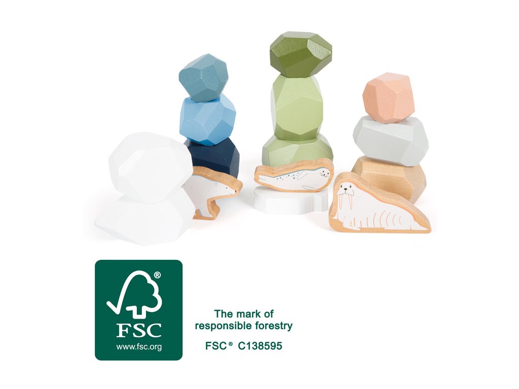 S touto balanční hračkou inspirovanou Montessori si děti užijí mnoho zábavy. Jedenáct balančních kamenů různých tvarů, barev a velikostí je vyrobeno z FSC® dřeva. Děti si při hře procvičí jemnou motoriku a zručnost, také soustředění. Balanční kameny jsou vhodné pro malé i velké, pomohou zapomenout na každodenní stres. Nechybí ani figurky – tuleň, lední medvěd, mrož a ledová kra dokreslují arktickou scenérii, děti inspirují k představivé hře. Skládejte kameny a zvířátka na sebe, nebo počítejte, třiďte dle barev… Kreativitě se meze nekladou. Hlavní vlastnosti: balanční hračka11 balančních kamenů, 3 zvířátka, ledová kra100% FSC® dřevoinspirováno Montessorirozvíjí jemnou motoriku, soustředění, trpělivost, kreativní myšleníperfektní pro malé rucepříjemné barvy a tvaryřada Arctic Značka a certifikát FSC® (Forest Stewardship Council) zaručuje, že dřevo, ze kterého byl produkt vyroben, nebylo vytěženo nelegálně a pochází z lesů obhospodařovaných šetrným či přírodě blízkým způsobem, ve kterém jsou dodržovány přísné environmentální a sociální požadavky. Značka FSC® na výrobku znamená, že svým nákupem pomáháte chránit lesy a podporujete šetrné, odpovědné či přírodě blízké hospodaření, díky kterému jsou naše lesy stabilnější, zdravější, mají přirozenou druhovou skladbu a lépe odolávají negativním následkům klimatických změn.