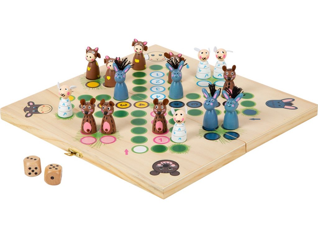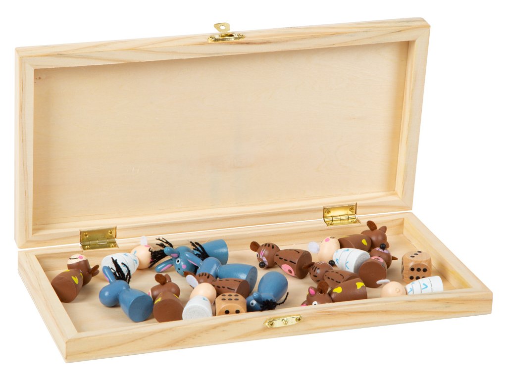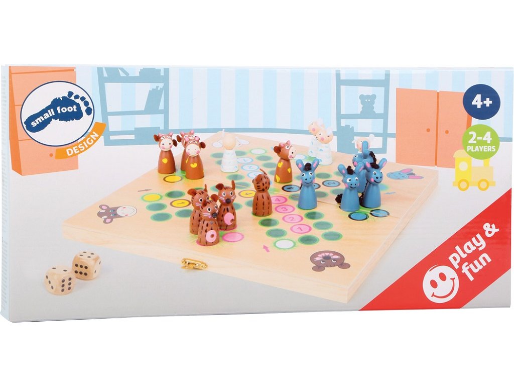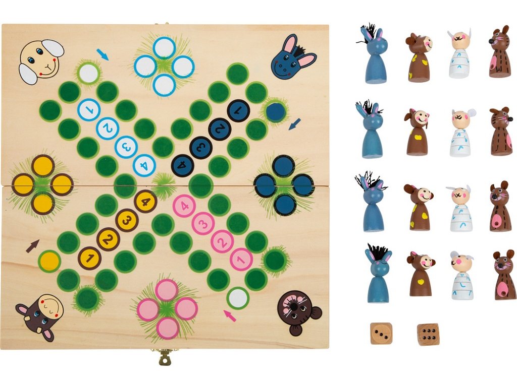 Bůů, íáá! Čtyři rozdílná zvířata z farmy, která se při hře předhání. Snaží se, aby byla v domečku jako první, snad jim k tomu pomohou dobré hody kostkou. Hraním hry se děti mohou naučit čísla a procvičit si motoriku. Figurky můžete uložit do dřevěného boxu se zámkem, který slouží i jako herní deska. Hlavní vlastnosti: klasická hra Človeče se zvířecí tématikouhra pro 2-4 hráčeideální společník na výlety – baleno v praktické dřevěné krabičcevyrobeno z robustního dřeva