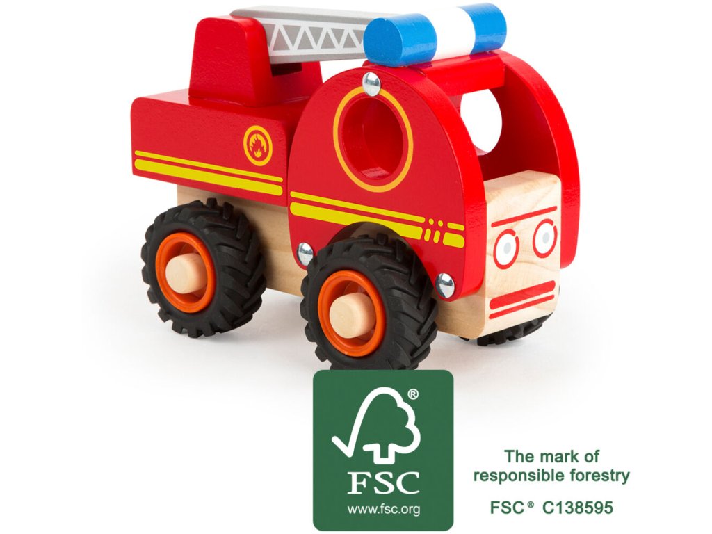 Toto hasičské auto přijede na místo co nevidět! Je vyrobeno ze 100% FSC® dřeva a mladým fanouškům hasičů nabídne mnoho možností hry. Pohyblivý žebřík dopraví hasiče kam potřebují, tichá pogumovaná kolečka odvezou auto bez problému na místo další mise! Hlavní vlastnosti: ideální pro fanoušky autíčekpevné dřevo, zaoblené hranyrealistický designdo auta se vejde figurka100% FSC® dřevopohyblivý žebříktichá pogumovaná kolečka Značka a certifikát FSC® (Forest Stewardship Council) zaručuje, že dřevo, ze kterého byl produkt vyroben, nebylo vytěženo nelegálně a pochází z lesů obhospodařovaných šetrným či přírodě blízkým způsobem, ve kterém jsou dodržovány přísné environmentální a sociální požadavky. Značka FSC® na výrobku znamená, že svým nákupem pomáháte chránit lesy a podporujete šetrné, odpovědné či přírodě blízké hospodaření, díky kterému jsou naše lesy stabilnější, zdravější, mají přirozenou druhovou skladbu a lépe odolávají negativním následkům klimatických změn.