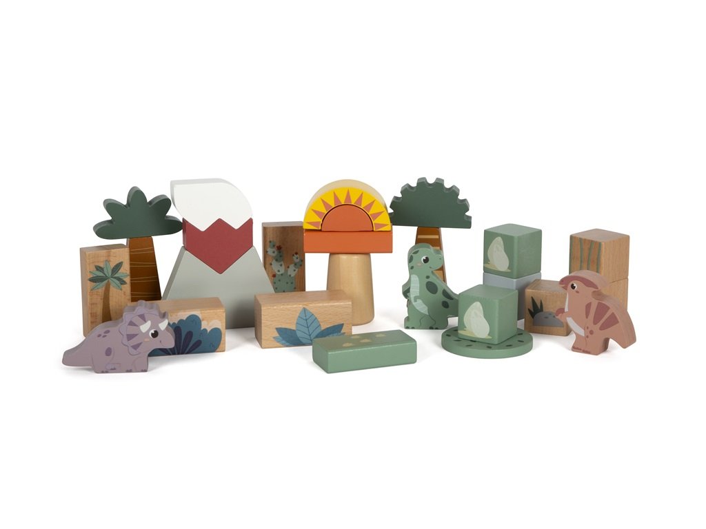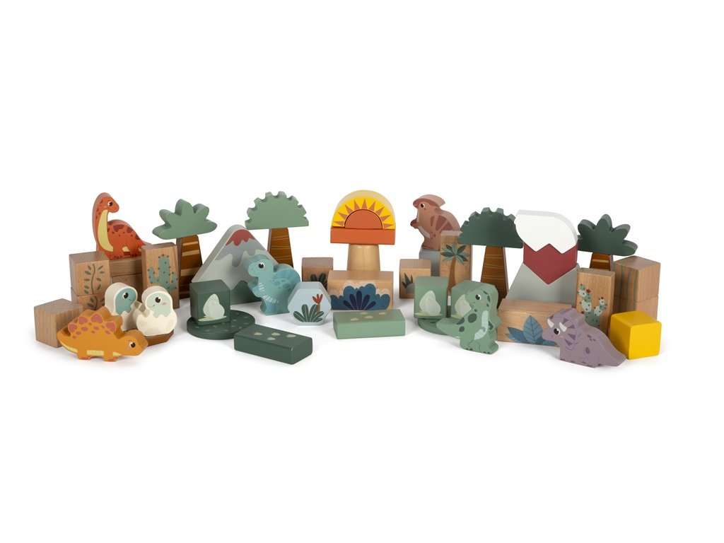 S touto velkou sadou dřevěných kostek si děti užijí spoustu zábavy. Pravěk s oblíbenými dinosaury jako je T-rex, Stegosaurus, Triceratops a další ožijí před Vašima očima. Sada obsahuje také kostky v přírodním vzhledu a jiné s obrázky stromů, rostlin, skalnatých hor, sluníčka a podobně, takže si děti vytvoří krajinu, v jaké kdysi dinosauři žili. Kostky jsou vyrobeny ze 100% certifikovaného dřeva FSC®.S hračkami z produktové řady "Dino" jsou tématem fascinující prehistoričtí tvorové, kteří upoutají pozornost lidí všech věkových kategorií. Tyto dřevěné hračky podporují rozvoj motorických dovedností, inspirují dětskou kreativitu a představivost a povzbuzují děti, aby se dozvěděly více o přírodě a historii těchto pravěkých obrů. Hlavní vlastnosti: obsahuje 6 kostek dinosaurů a 28 dalších kostek vyrobeno z certifikovaného dřeva FSC®rozvíjí prostorovou představivost a kreativituzlepšuje motorické dovednosti Značka a certifikát FSC® (Forest Stewardship Council) zaručuje, že dřevo, ze kterého byl produkt vyroben, nebylo vytěženo nelegálně a pochází z lesů obhospodařovaných šetrným či přírodě blízkým způsobem, ve kterém jsou dodržovány přísné environmentální a sociální požadavky. Značka FSC® na výrobku znamená, že svým nákupem pomáháte chránit lesy a podporujete šetrné, odpovědné či přírodě blízké hospodaření, díky kterému jsou naše lesy stabilnější, zdravější, mají přirozenou druhovou skladbu a lépe odolávají negativním následkům klimatických změn.