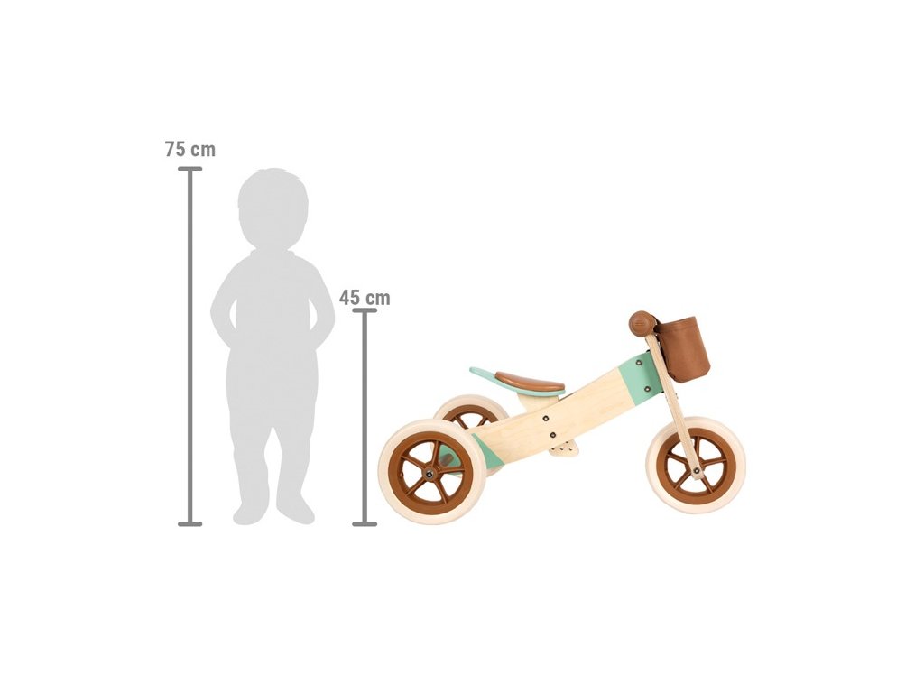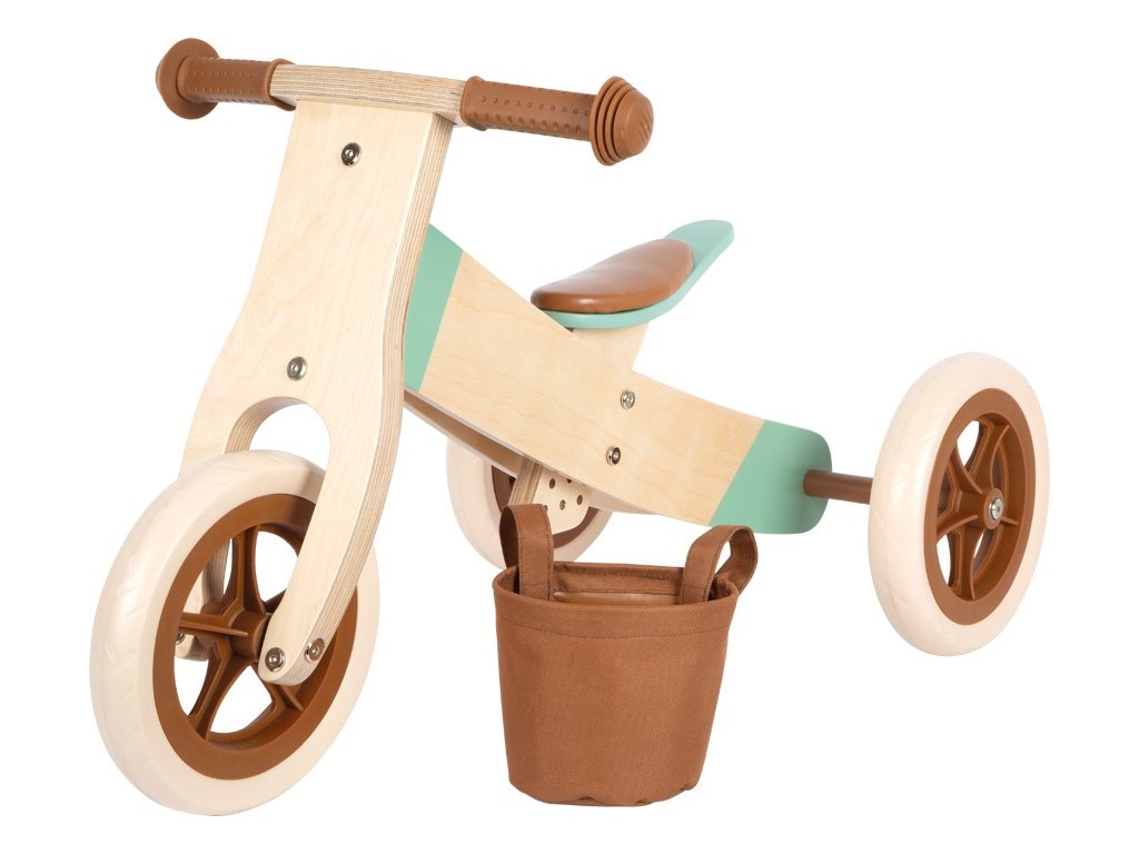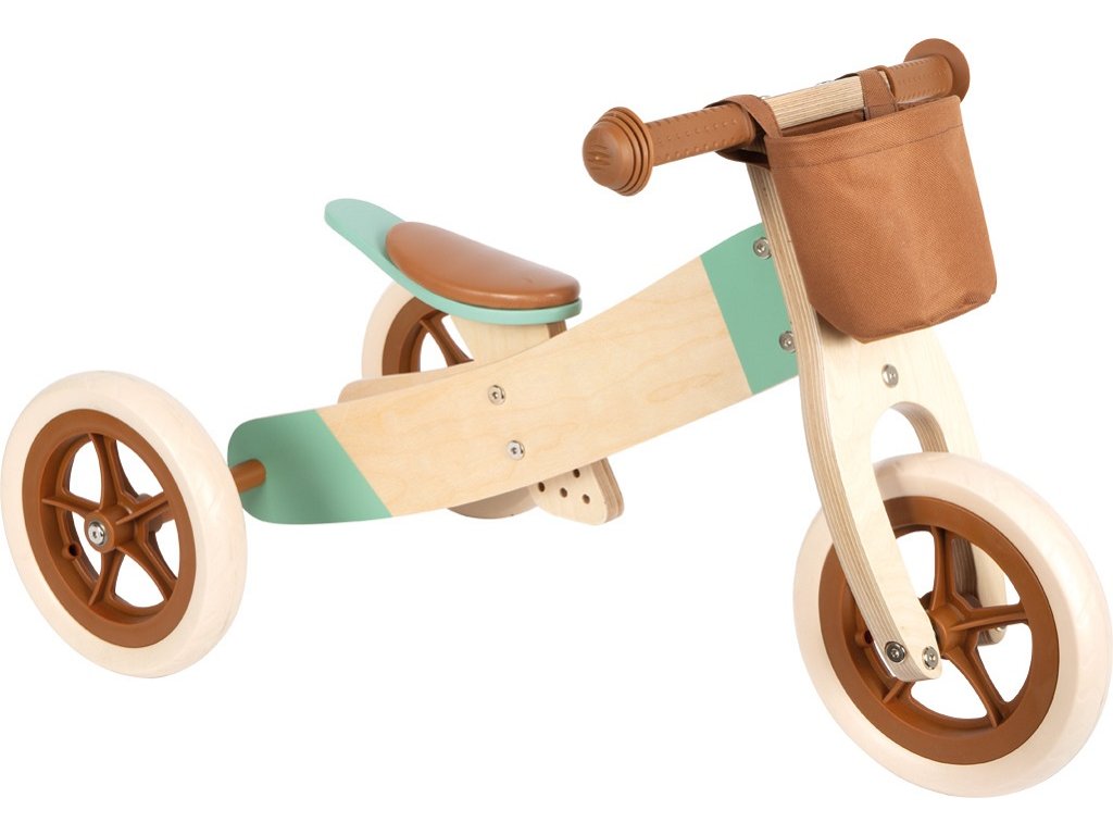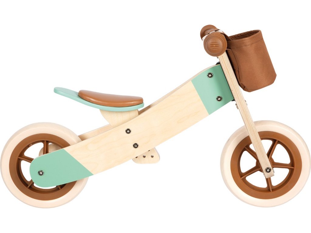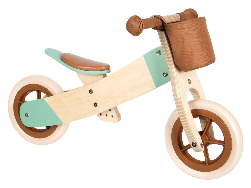 Stylové a bezpečné! Toto lehké dřevěné odrážedlo roste díky nastavitelnému sedadlu s dětmi. Když si děti budou na tříkolovém odrážedle jisté, lze jej přestavět na klasickou dvoukolovou verzi! Sedadlo lze nastavit do tří různých výšek. Do odnímatelného košíku na řídítkách si děti mohou uložit své oblíbené hračky. Gumové rukojeti, nezničitelné pneumatiky (rozměr 25,4 cm) a polstrované sedadlo zaručují zábavnou a bezpečnou jízdu. Nejprve odrážecí tříkolka k tréninku jízdy, poté balanční odrážedlo pro začínající jezdce! Balanční a tříkolová verze odrážedla trénuje motoriku, rovnováhu a koordinaci. Výrobek vyžaduje montáž, dodáváno s obrázkovým návodem k sestavení. Hlavní vlastnosti: 2 v 1 - lze použít jako tříkolku a balanční koloroste s dítětem díky nastavitelné výšce sedadlarobustní dřevěná konstrukce, nízká hmotnostpolstrované sedadlo pro pohodlnou jízdugumové rukojetiodnímatelný košík na řídítkáchtrénuje rovnováhu a koordinaci