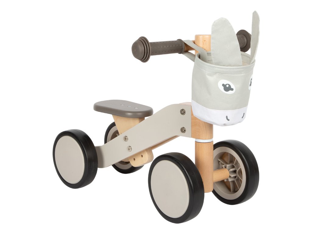 Dřevěné odrážedlo v designu oslíka, které se stane nepostradatelným pomocníkem Vašeho dítka doma i při procházkách venku. Proč namáhat nožičky, když může sednout a frčet?! Dřevěná robustní konstrukce je nejen příjemná na dotek, ale i nesmírně stabilní. Pogumovaná kola zajistí, že vaše dítě může prozkoumávat svět tiše a bezpečně, aniž by rušilo okolí. Gumové rukojeti nabídnou malým průzkumníkům pevný úchop a kontrolu nad svým vozítkem. Sedátko je nastavitelné od 22 do 25 cm, může se tak přizpůsobit výšce dítěte. Součástí je také odepínatelná taška na řídítkách v designu oslíka, která může sloužit jako praktický úložný prostor pro láhev s pitím či plyšového kamaráda. Zadní kola jsou blízko sebe a nabízejí tak dostatek prostoru pro nohy při odrazu. Hlavní vlastnosti: zajímavý design s funkčními prvkynastavitelné sedátko na výšku a vzdálenost od řídítekodnímatelná taška v designu osladřevěná robustní konstrukcepogumovaná kolagumové rukojetirozvíjí pohybové dovednosti a rovnováhu dětívhodné pro děti od 12 měsíců