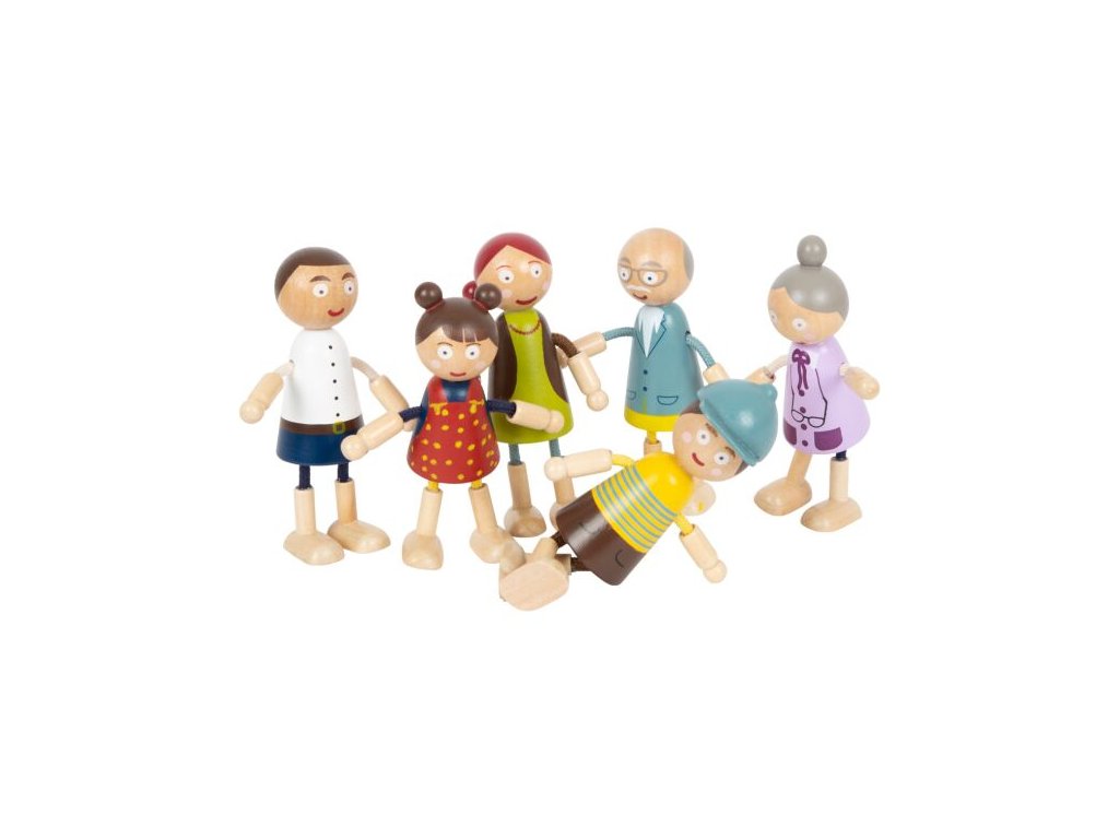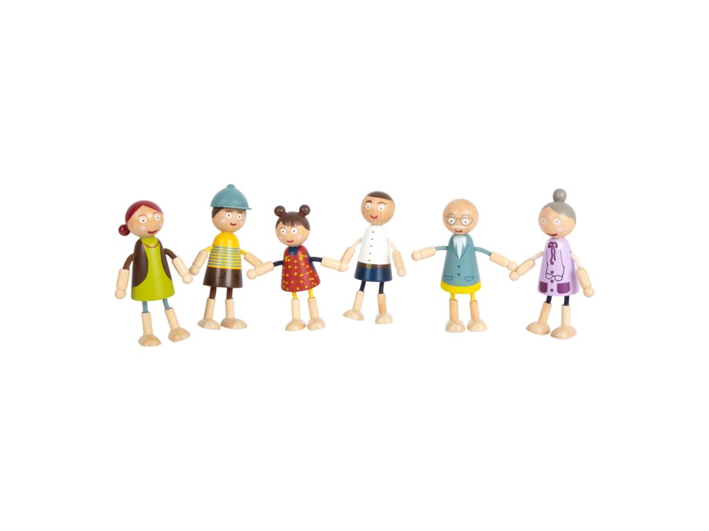 Oživte svůj domeček pro panenky s touto rozkošnou rodinkou! Postavičky jsou vyrobeny z kvalitního dřeva a mají ohebné části z drátků opletených textilií, které jim umožňují stát, sedět a snadno měnit pozice. V sadě najdete maminku, tatínka, babičku, dědečka, bratra a sestru – všechny dokonale přizpůsobené pro dětské ruce. Díky své odolné konstrukci jsou postavičky ideální pro dlouhé hodiny plné zábavné hry. Hlavní vlastnosti: 6 figurekodolné a pohyblivéprecizně propracované detailyideální pro nápaditou hru