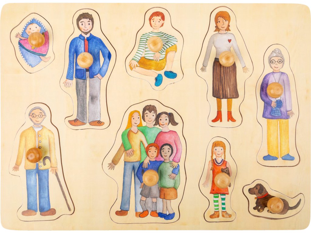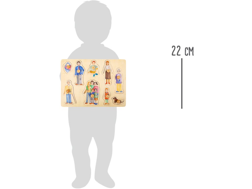 Zastavte se na okamžik a pohlédněte, jak vaše dítě pomocí malých prstíčků obratně manipuluje s barevnými kousky dřeva. To není jen hračka, to je vstupenka do světa fantazie a rodinných vazeb. Představujeme vám Small Foot Dřevěné puzzle Rodina, kde každý dílek je nabitý radostí a každá skládanka je příběhem, který čeká, až bude vyprávěn. Vyrobené s německou precizností a pečlivostí. S láskyplně ilustrovanými dílky a dřevěnými knoflíky jsou tyto puzzle navrženy tak, aby rozvíjely jemnou motoriku a trpělivost vašich dětí, zatímco se učí o rodinných vazbách a přátelství. Je to zábavná a vzdělávací hračka, která odráží naši odpovědnost za kvalitu, bezpečnost a respekt k přírodě- pro bezstarostné hraní, které můžete důvěřovat. Představte si, jak vaše dítě objevuje svět rodinných výletů a dobrodružství, zatímco si hraje s produktem, který je stejně jedinečný jako vaše rodina. Protože každá chvíle strávená společně při hraní je momentem, která vytváří nezapomenutelné vzpomínky a posiluje rodinné pouto. Hlavní vlastnosti: obsahuje 9 vkládacích dílů (maminku, tatínka, miminko, brášku, sestřičku, babičku a dědečka, pejska a kamarády)procvičuje jemnou motoriku a trpělivostvhodné od 1 roku