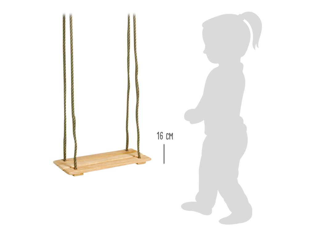 Klasická houpačka v tradičním, nestárnoucím provedení hravě zpestří zahradu, nebo i interiér. Je vyrobena z masivního, pečlivě opracovaného dřeva. Díky přírodní úpravě se děti mohou zabavit jejím individuálním barvením a lakováním. Velmi poddajná a odolná nylonová lana jsou na koncích opatřena kovovými kroužky k zavěšení. Výšku houpačky lze kdykoli snadno upravit pomocí kovových průvlaků, a může se tak stále přizpůsobovat rostoucím dětem. Hlavní vlastnosti: jednoduché nastavení délkynosnost 100 kgodolné provedení
