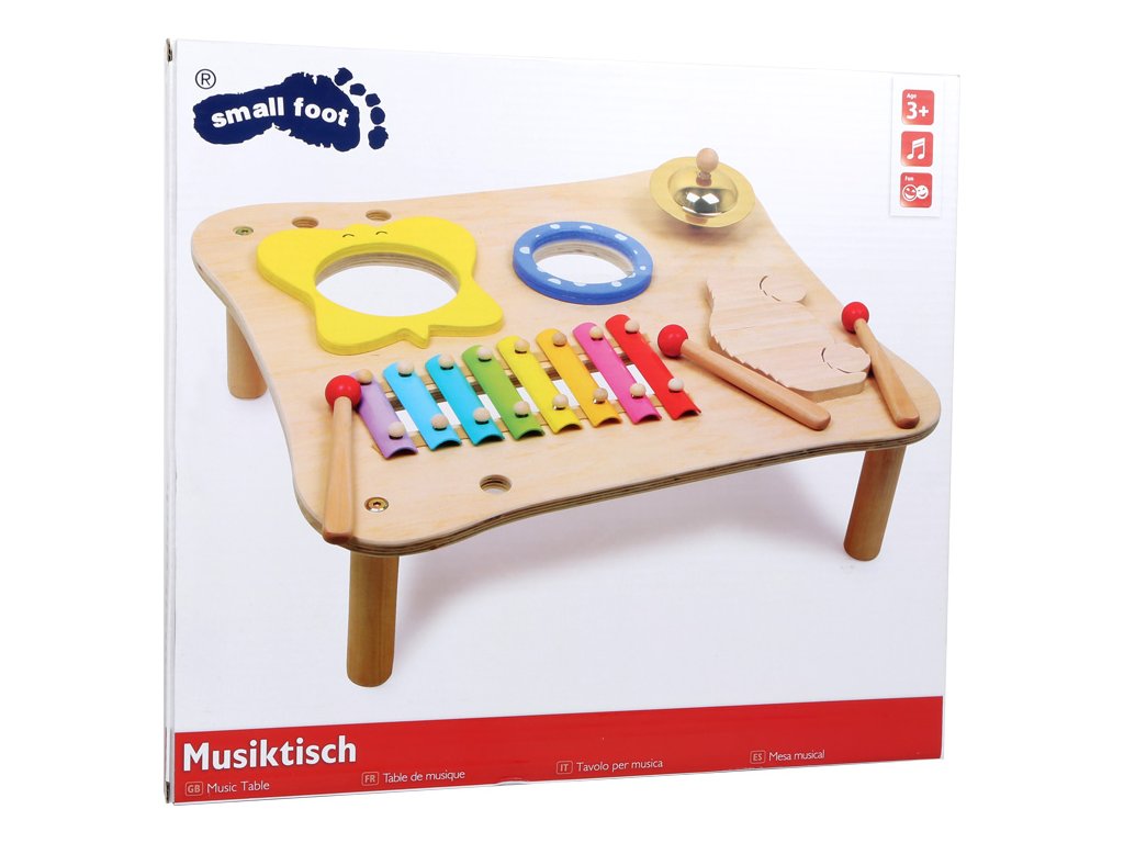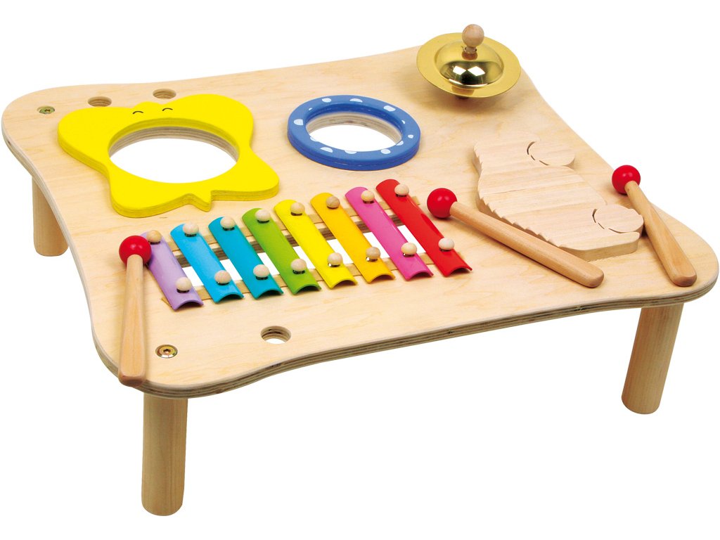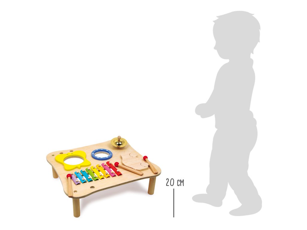 Malí hudebníci mohou trénovat motoriku a rytmus pomocí tohoto hudebního stolečku. Hravou formou mohou děti prozkoumat různorodý svět zvuků. Stoleček má šroubovací nohy z bukového dřeva. Hlavní vlastnosti: kvalitní zpracováníprohlubuje lásku k hudbě a rytmikutrénuje sluch a motoriku