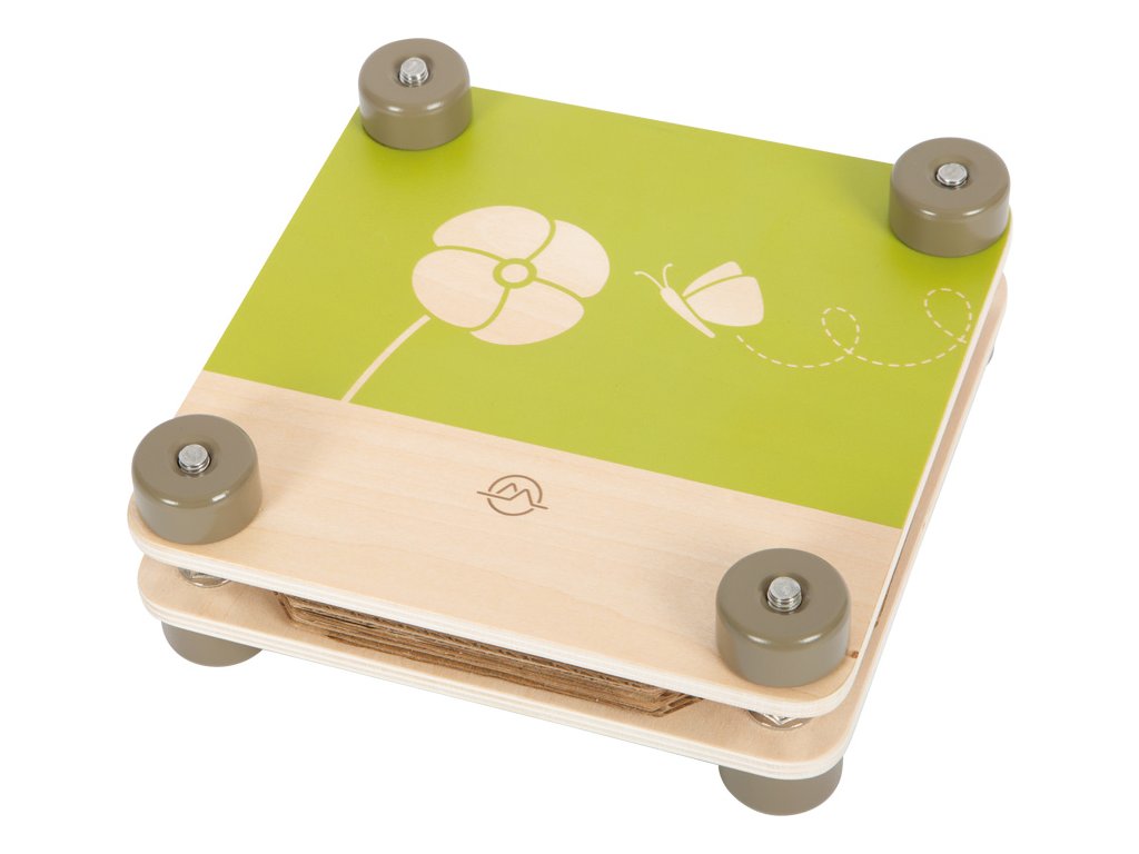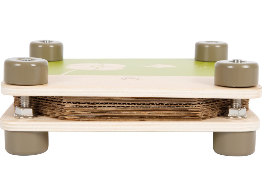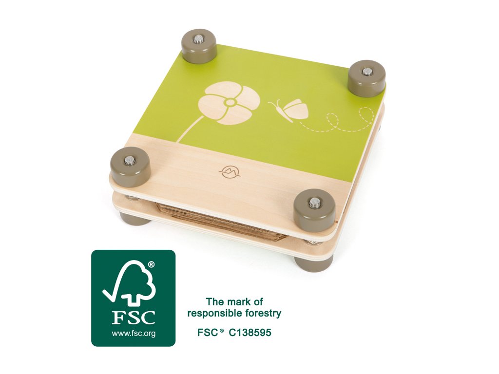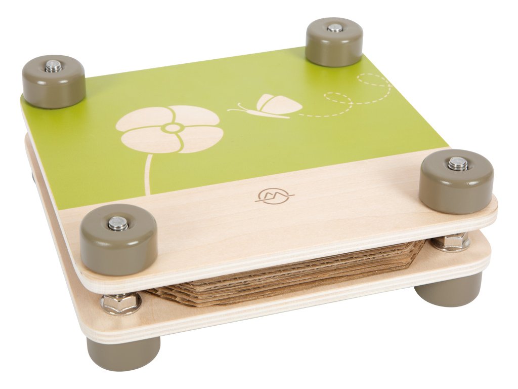 Tento lis na květiny vhodný pro děti je vyrobený z pevného dřeva s certifikátem FSC® . Je vybaven čtyřmi nožkami a obsahuje 8 kartonových listů a 16 lisovacích listů. Díky tomu nabízí dostatek prostoru pro sušení a zploštění listů, okvětních plátků a květin. Jednoduchým vložením nasbíraných přírodních pokladů mezi vrstvy papíru a lepenky je snadno uchováte. Čtyři kovové šrouby a matice umístěné v dřevěných kroužcích usnadňují dětem jeho používání tím, že jim umožňují silný úchop a dostatečnou sílu ke stlačení dvou dřevěných panelů k sobě. Tento dřevěný lis na květiny dělá skvělý vizuální dojem také svými zaoblenými hranami, kvalitním zpracováním a atraktivním designem v kombinaci s moderními zelenými barvami. Květiny jsou fascinující součástí přírody a děti milují mít vlastní malou sbírku okvětních lístků, květin a listů. S lisem na květiny pro děti z produktové řady "Discover" mohou i malé děti uchovat své oblíbené květiny a listy. Obsluha květinového lisu je velmi snadná. Kartonové kusy a dva kusy papíru jsou položeny na sebe a mezi kusy jsou vloženy květiny nebo listy. Přiložený papír nejen chrání lisované předměty, ale také absorbuje přebytečnou vlhkost. Díky tomu se děti mohou dlouho těšit ze svých nasbíraných květin a vždy budou mít spoustu materiálů na výrobu. Tento lis na květiny není jen praktickým řemeslným nástrojem, ale také skutečným poutačem pro řemeslný stůl. Hlavní vlastnosti: pevný lis na květiny vyrobený z certifikovaného dřeva FSC® dva dřevěné panely, 8 kartonových listů a 16 papírových listůvšestranné použití, jako je lisování květin, okvětních lístků, listů a trávypraktická pomůcka pro kutilské projekty Značka a certifikát FSC® (Forest Stewardship Council) zaručuje, že dřevo, ze kterého byl produkt vyroben, nebylo vytěženo nelegálně a pochází z lesů obhospodařovaných šetrným či přírodě blízkým způsobem, ve kterém jsou dodržovány přísné environmentální a sociální požadavky. Značka FSC® na výrobku znamená, že svým nákupem pomáháte chránit lesy a podporujete šetrné, odpovědné či přírodě blízké hospodaření, díky kterému jsou naše lesy stabilnější, zdravější, mají přirozenou druhovou skladbu a lépe odolávají negativním následkům klimatických změn.