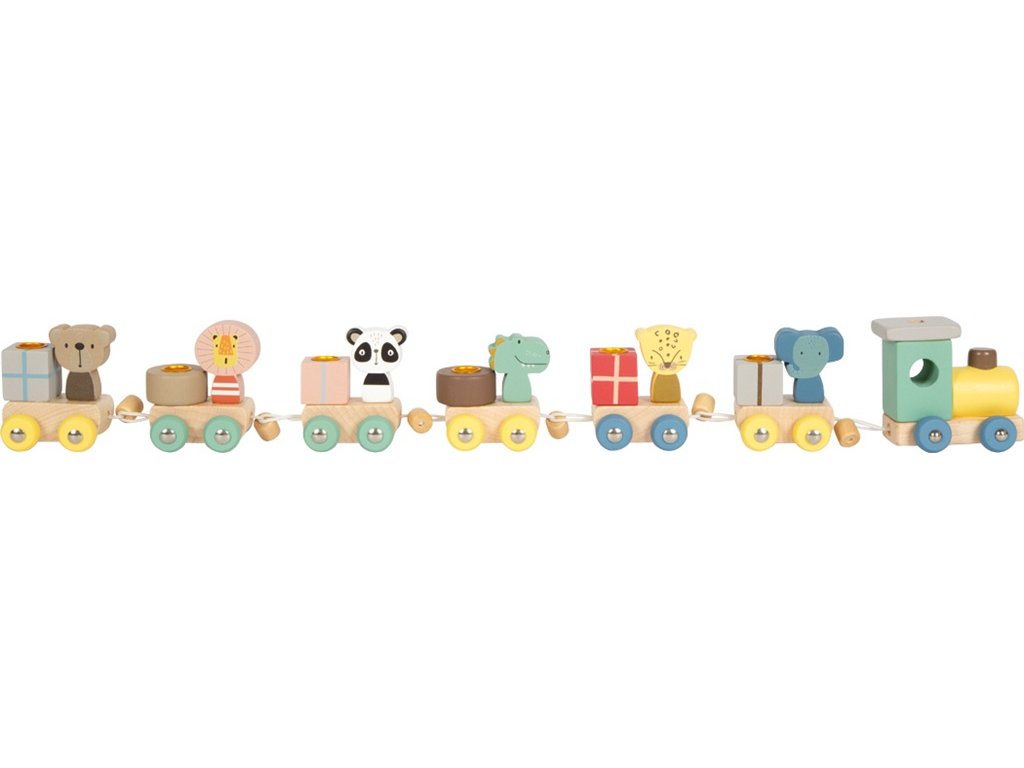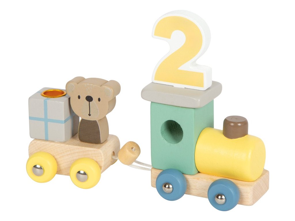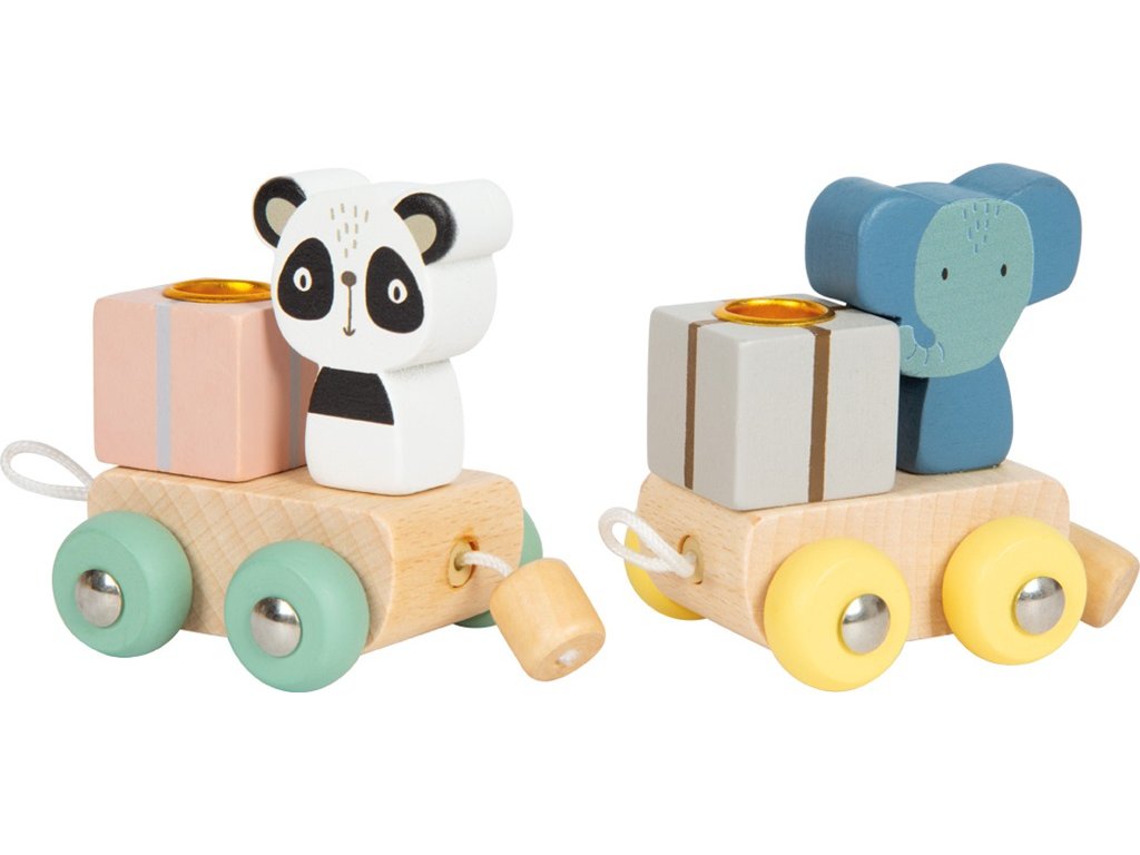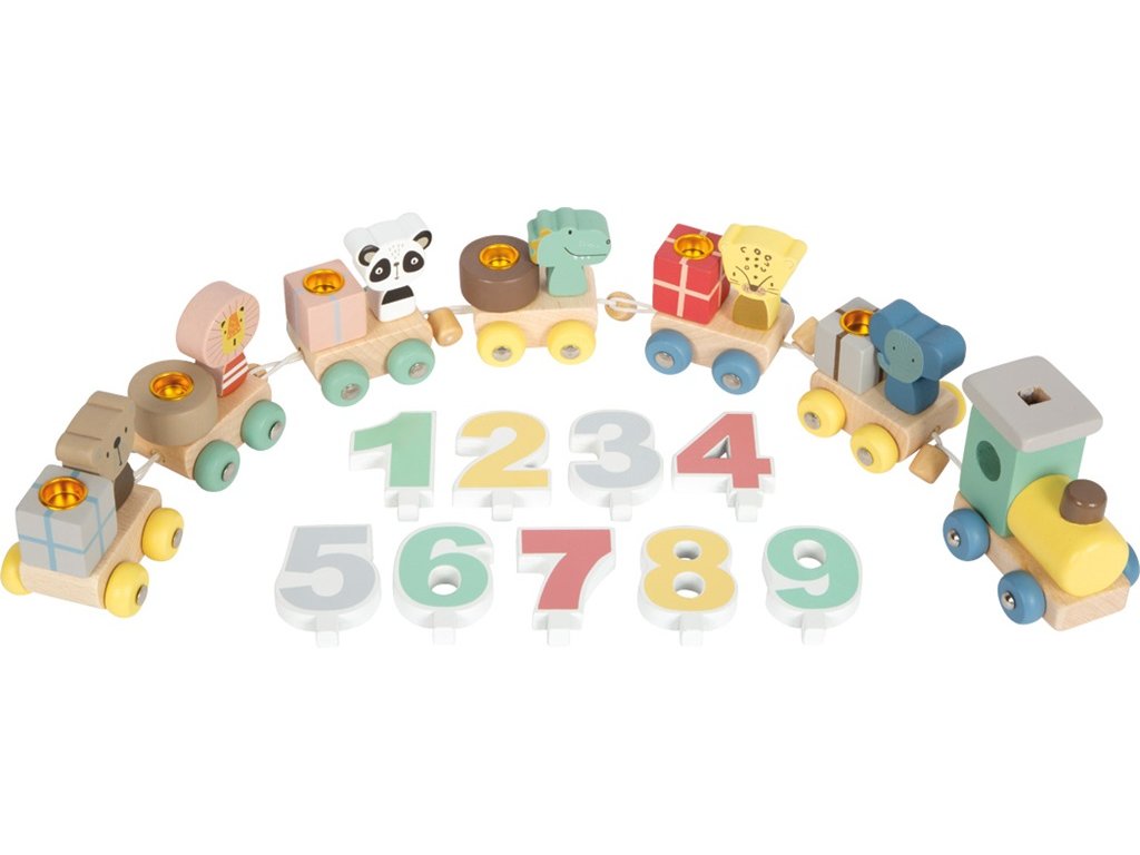 Vyčarujte malým dětem úsměv na tváři tímto narozeninovým vláčkem, jehož pasažéři jsou zvířátka z džungle. S láskou navržená zvířátka přivážejí narozeninové svíčky na svých vagónech. Děti si mohou libovolně umísťovat 6 zvířátek na 6 vagónů. Do lokomotivy děti mohou vkládat číslice od 1 po 9. Vagóny lze snadno spojit či odpojit pomocí malých háčků a oček. Navíc se se zvířátky dají vymýšlet další hry, když vystoupí z vlaku. Nebo si mohou děti hrát jen tak a vymýšlet své vlastní příběhy. Hračka je ideální pro děti od 24 měsíců. Díky vysokému množství přírodního dřeva v kombinaci s moderními barvami je tento narozeninový vlak opravdovým lákadlem a příjemnou dekorací na každém narozeninovém stole. Balení obsahuje: 6 zvířátek, 6 vagónků, lokomotiva s čísly od 1 do 9 Hlavní vlastnosti: roztomilá narozeninová dekoracepodporuje představivost