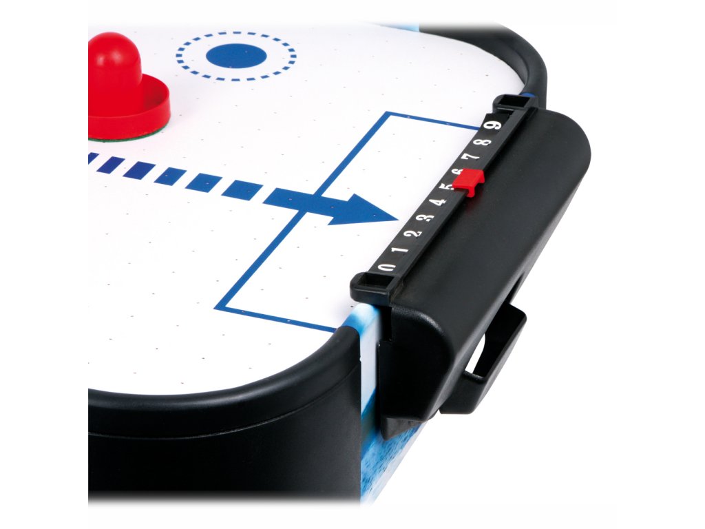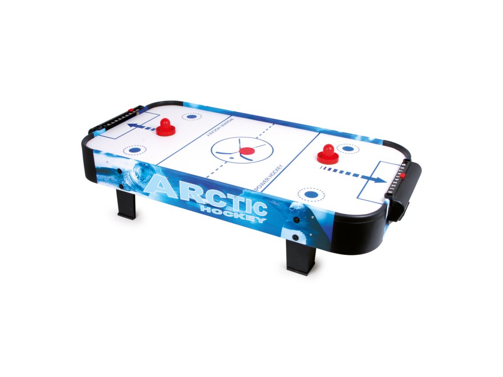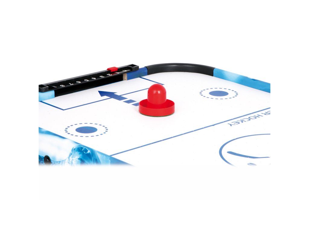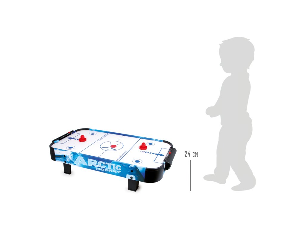 Populární vzdušný hokej prověří postřeh a hbitost dětí. Díky vzduchu vháněnému zespodu vestavěným ventilátorem může puk hladce, ale hlavně bleskurychle klouzat po hrací ploše. Hráči mají k dispozici kuželové pálky, kterými se snaží vstřelit puk do soupeřovy branky. Pálky jsou na spodních stranách opatřeny plstí pro snadný a bezhlučný pohyb. Branka každého z hráčů je vybavena jednoduchým číselníkem k zaznamenávání průběhu zápasu. Hru lze díky její velikosti snadno uklidit, přenášet, nebo i vzít na cesty. Napájení je zajištěno adaptérem se standardní eurozástrčkou pro 220–240 V. Výrobek vyžaduje montáž, dodáváno s obrázkovým návodem k sestavení. Hlavní vlastnosti: rychlá, akční hra pro 2 hráčehrací stůl s napájecím adaptérem, 2 pálky a 2 pukyčíselníky pro záznam skóre