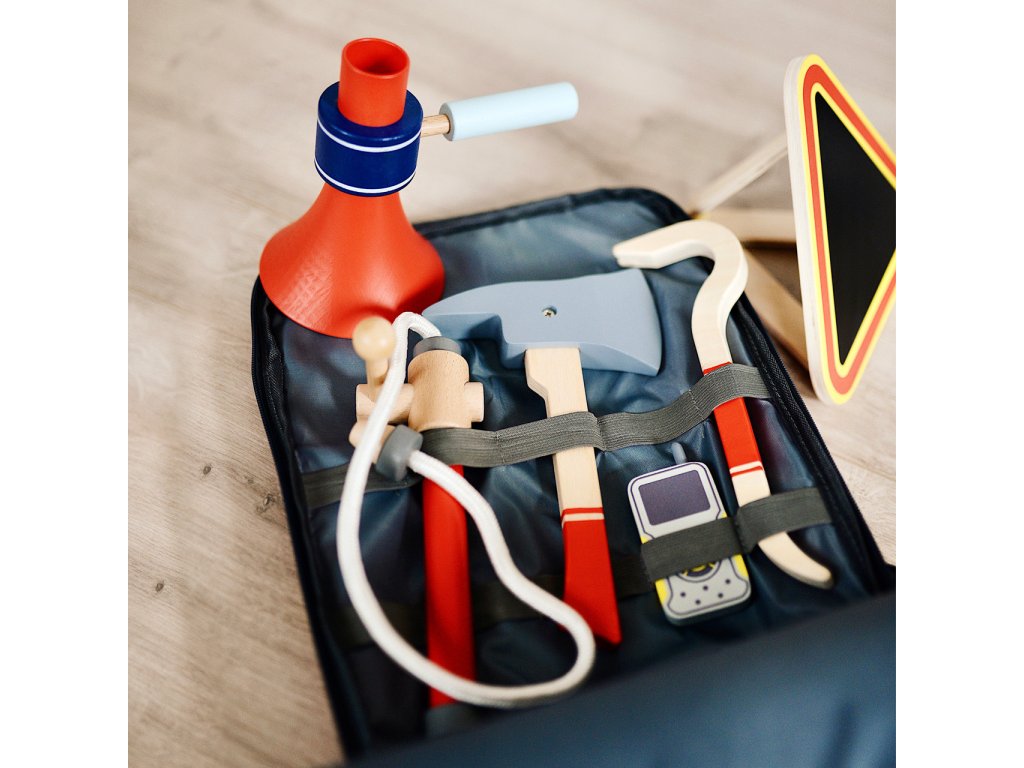 S tímto realistickým hasičským batohem v nouzových barvách s nastavitelnými ramenními popruhy jsou mladí hasiči vždy na místě, když je potřeba. Dvojitý zip zajišťuje široké otevření batohu. Batoh nabízí mnoho úložného prostoru a rychlý přístup k vybavení z robustního dřeva. Dvě další zacvakávací přezky na batohu umožňují připevnění dalšího příslušenství. Top je požární stříkačka! Praktický hasičský batoh s kompletní sadou hasičského vybavení a veškerým důležitým náčiním umožňuje dětem zahrát si vzrušující hasičský zásah. Hlavní vlastnosti: skvěle se hodí k motorové pile (12362)nastavitelné ramenní popruhy zacvakávací pásek pro zajištění příslušenství