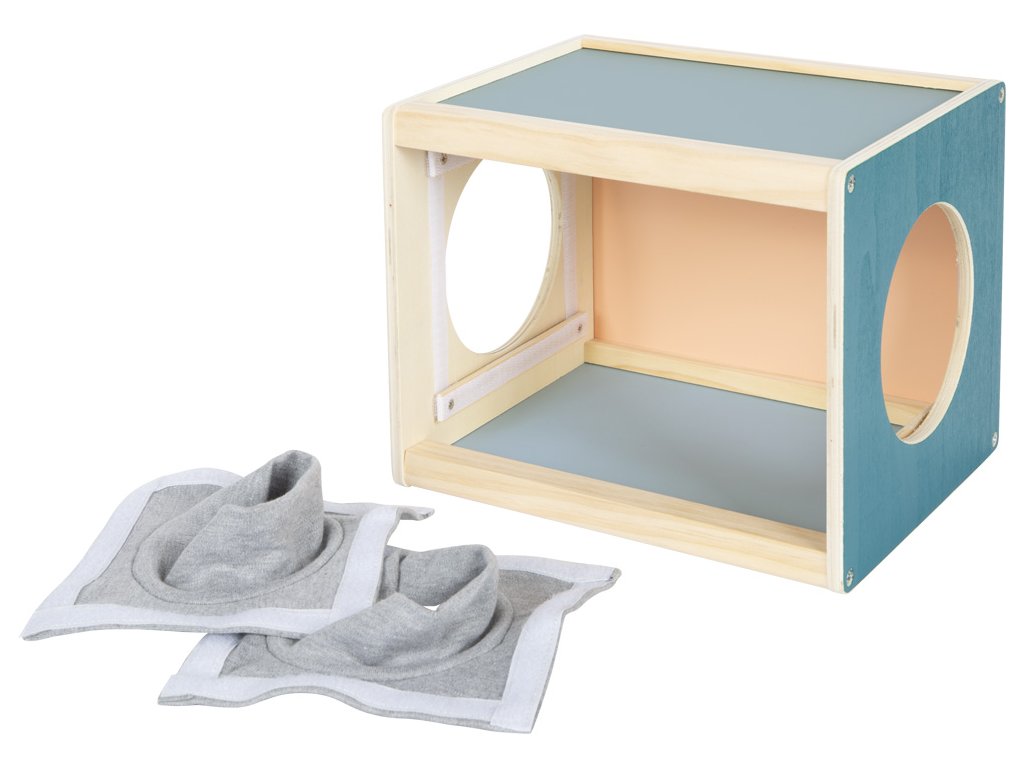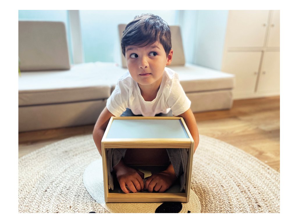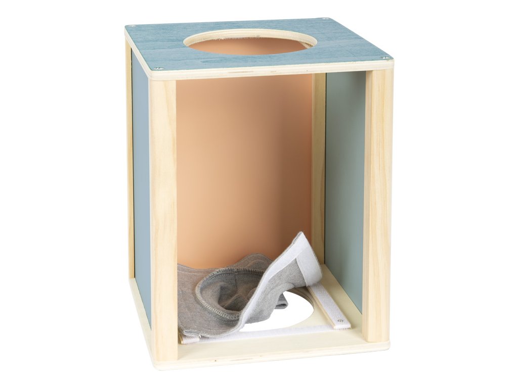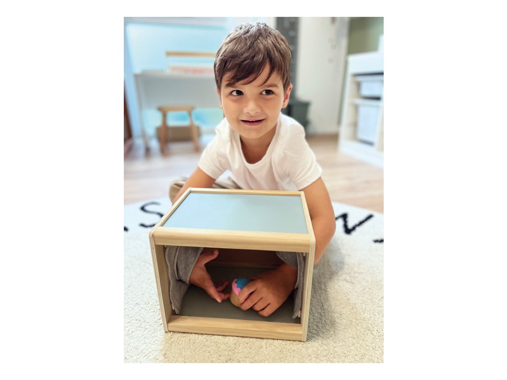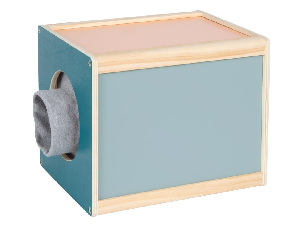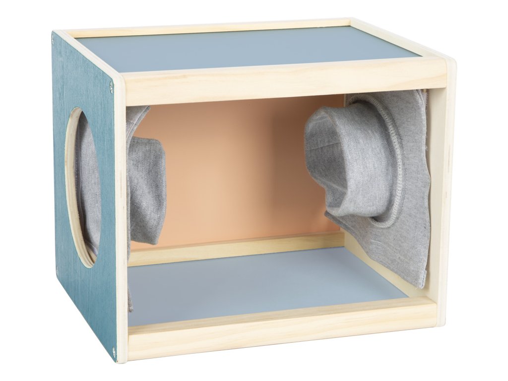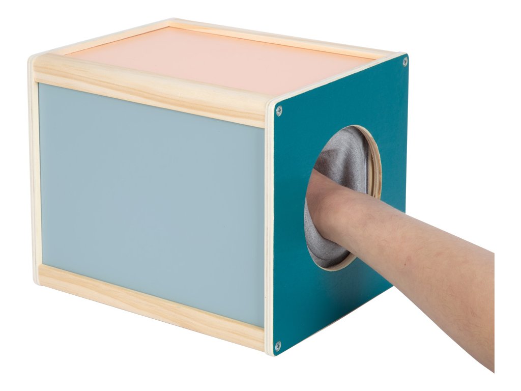 S tímto velkým boxem z produktové řady "Sensory" se dvěma bočními otvory se děti mohou uvnitř dotýkat různých předmětů. Hračka byla navržená pro podporu rozvoje smyslů a motorických dovedností. Je vhodná i pro ergoterapeutické účely. Dřevěný box lze naplnit zezadu různými předměty. Rukávy na bočních otvorech zakrývají výhled dovnitř boxu a zároveň umožňují příjemně měkký přístup. Jsou velikostí vhodné pro děti i dospělé. Vysoce kvalitní a zajímavý box v moderních barvách slibuje všestrannou a dlouhotrvající zábavu. Ať už se hraje jako paměťová hra, nebo jako hra na hledání, nebo jako hra na rozpoznávání – je to všestranná hmatová a smyslová hra, kterou lze hrát samostatně nebo s více hráči, pro ještě větší vzrušující zábavu. Rukávníky jsou připevněny pomocí suchých zipů, díky čemuž jsou odnímatelné, takže je lze prát v ruce na nízkou teplotu. Hlavní vlastnosti: hra je vhodná také do školek nebo družinpomáhá rozvoji poznávacích a motorických dovednostívhodná i pro ergoterapeutické účely
