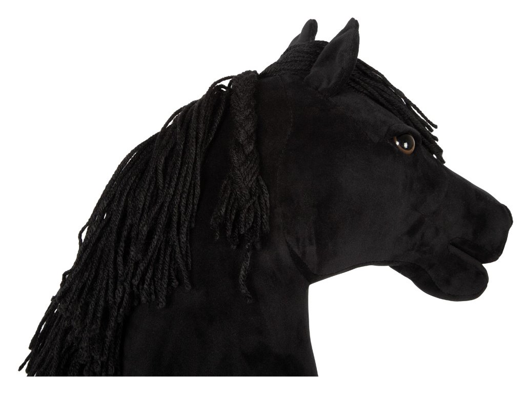 Připraven na velká jezdecká dobrodružství. Tento černý koník na tyči Hobby Horse je ideálním společníkem pro malé milovníky koní, kteří si chtějí hrát s fantazií a zároveň se aktivně hýbat. Inspirován klasickým koníkem na tyči, ale moderně zpracován – představuje aktivní zábavu při hobby horsingu, ať už při projížďce po zahradě, tréninku skoků v obýváku nebo na turnaji v parku. Koník má měkkou látkovou hlavu, hustou a snadno upravitelnou hřívu, pevnou tyč z masivního dřeva. Součástí je ohlávka, uzda a vodítko, které dodávají hře maximální autentičnost. Otevřená tlama umožňuje realistické nasazení udidla, jako u skutečného koně. Dřevěnou tyč lze jednoduše odšroubovat, což usnadňuje skladování i přepravu na další hobby horsingová dobrodružství.Tento všestranný jezdecký koník si již našel místo ve světě hobby horsingových soutěží i kreativních pohybových aktivit. Jako pohybová hračka je ideálním partnerem pro moderní sport Hobby Horsing a nadchne malé i velké jezdce. Hlavní vlastnosti: podporuje aktivní hraní a rozvíjí jemnou motorikupohybová hračka pro trendy sport Hobby horsingkrátká a pevná jezdecká tyč se závitem z masivního dřevakompaktní a snadno přenosný, ideální na cesty i turnajehřívu lze libovolně česat, upravovat a zaplétats vyměnitelnou ohlávkou