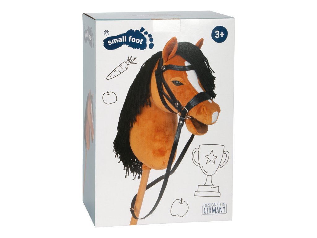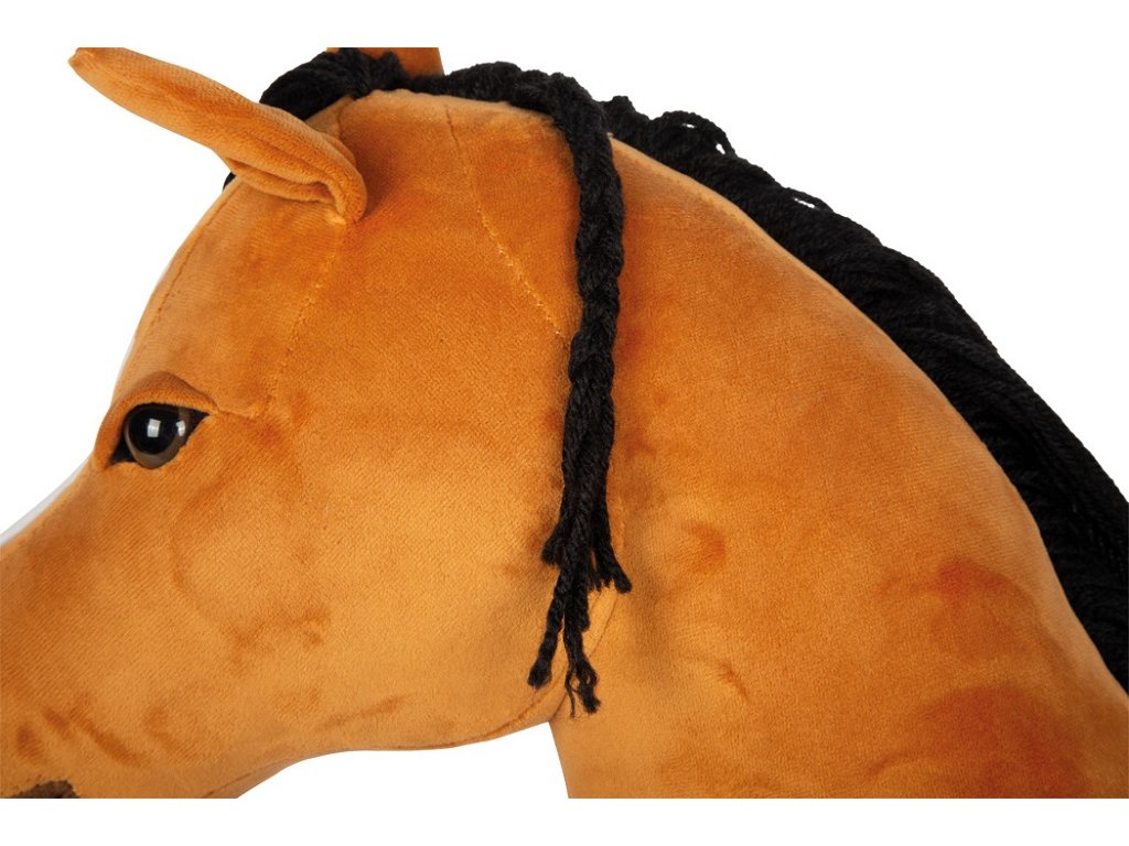 Připraven na velká jezdecká dobrodružství. Tento hnědý koník na tyči Hobby Horse je ideálním společníkem pro malé milovníky koní, kteří si chtějí hrát s fantazií a zároveň se aktivně hýbat. Inspirován klasickým koníkem na tyči, ale moderně zpracován – představuje aktivní zábavu při hobby horsingu, ať už při projížďce po zahradě, tréninku skoků v obýváku nebo na turnaji v parku. Koník má měkkou látkovou hlavu, hustou a snadno upravitelnou hřívu, pevnou tyč z masivního dřeva. Součástí je ohlávka, uzda a vodítko, které dodávají hře maximální autentičnost. Otevřená tlama umožňuje realistické nasazení udidla, jako u skutečného koně. Dřevěnou tyč lze jednoduše odšroubovat, což usnadňuje skladování i přepravu na další hobby horsingová dobrodružství.Tento všestranný jezdecký koník si již našel místo ve světě hobby horsingových soutěží i kreativních pohybových aktivit. Jako pohybová hračka je ideálním partnerem pro moderní sport Hobby Horsing a nadchne malé i velké jezdce. Hlavní vlastnosti: podporuje aktivní hraní a rozvíjí jemnou motorikupohybová hračka pro trendy sport Hobby horsingkrátká a pevná jezdecká tyč se závitem z masivního dřevakompaktní a snadno přenosný, ideální na cesty i turnajehřívu lze libovolně česat, upravovat a zaplétats vyměnitelnou ohlávkou