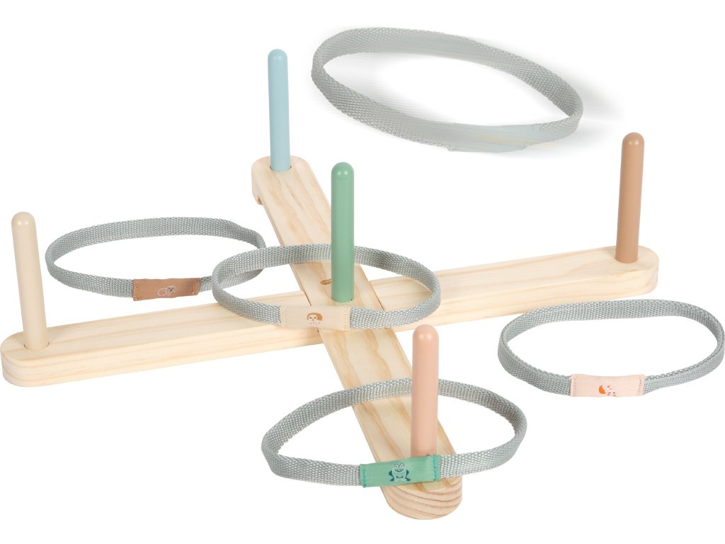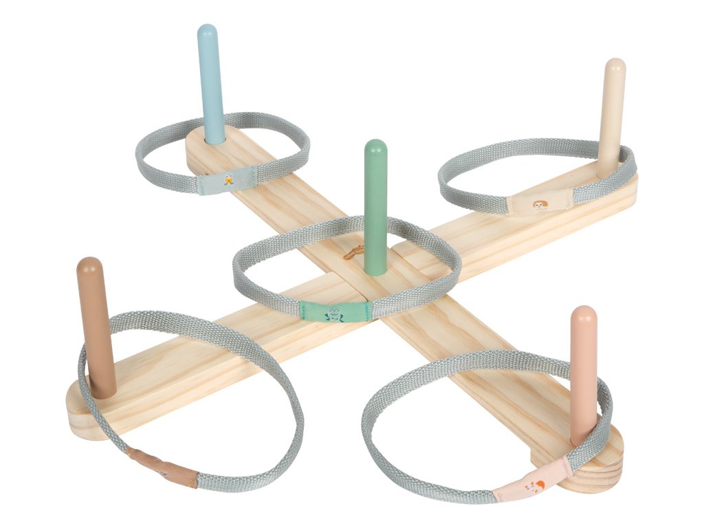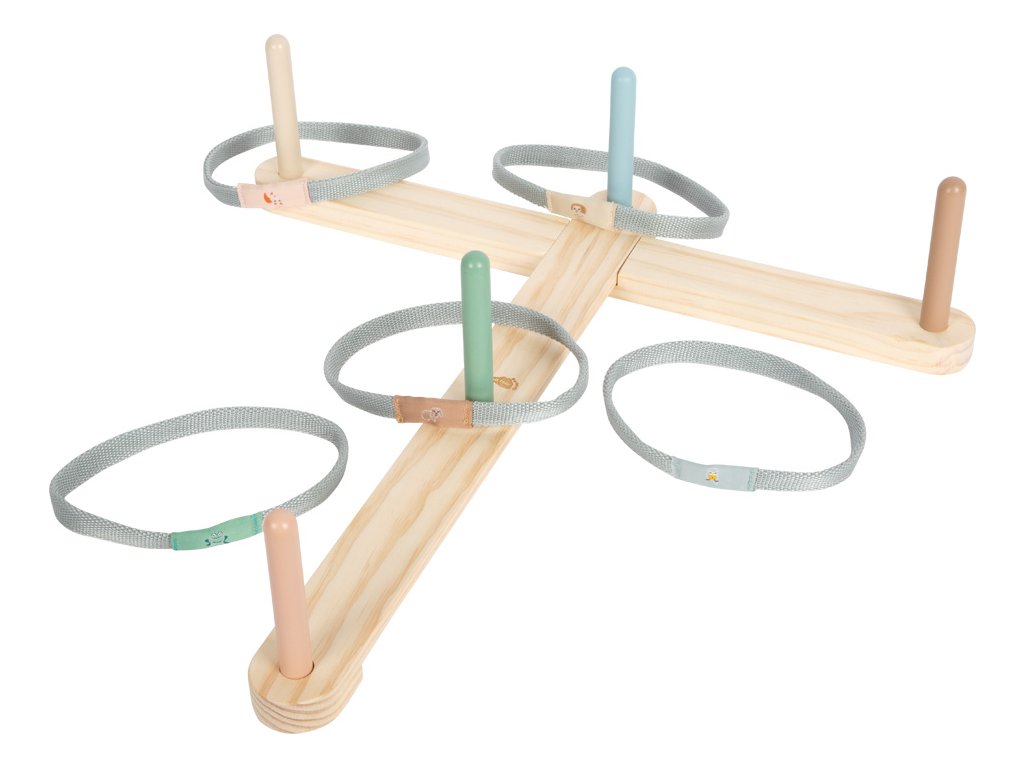 Kdo má nejlepší mušku? Trefíte se napoprvé? Precizně vyrobená hra zabaví celou rodinu včetně menších dětí! Kroužky a tyče jsou odlišeny barevně a každý kroužek je navíc označen roztomilým zvířátkem - žábou, veverkou, ptáčkem, králíčkem a ježkem. Sada se skládá z 5 tyčí a 5 házecích kroužků v odpovídajících barvách. Díky měkkému materiálu kroužků si můžete hru užít nejen venku, ale i v interiéru. Cíl s 5 tyčemi je snadno sestavitelný buď do tvaru kříže nebo písmene T. Dodává se s praktickým látkovým pytlíkem, který umožňuje snadné skladování a přepravu hry. Házení kroužků můžete zkombinovat s dalšími hrami z produktové řady Garden Buddies, které nabízejí spoustu zábavy a pohybu. Hlavní vlastnosti: cíl s 5 tyčemi, 5 házecích kroužkůhra pro celou rodinu vhodné do interiéru i exteriéru 2 možnosti sestavení cíle v praktickém látkovém pytlíkuideální pro procvičování přesnosti hodusoučást produktové řady Garden Buddies