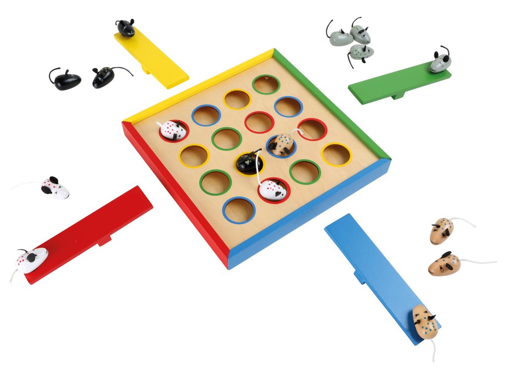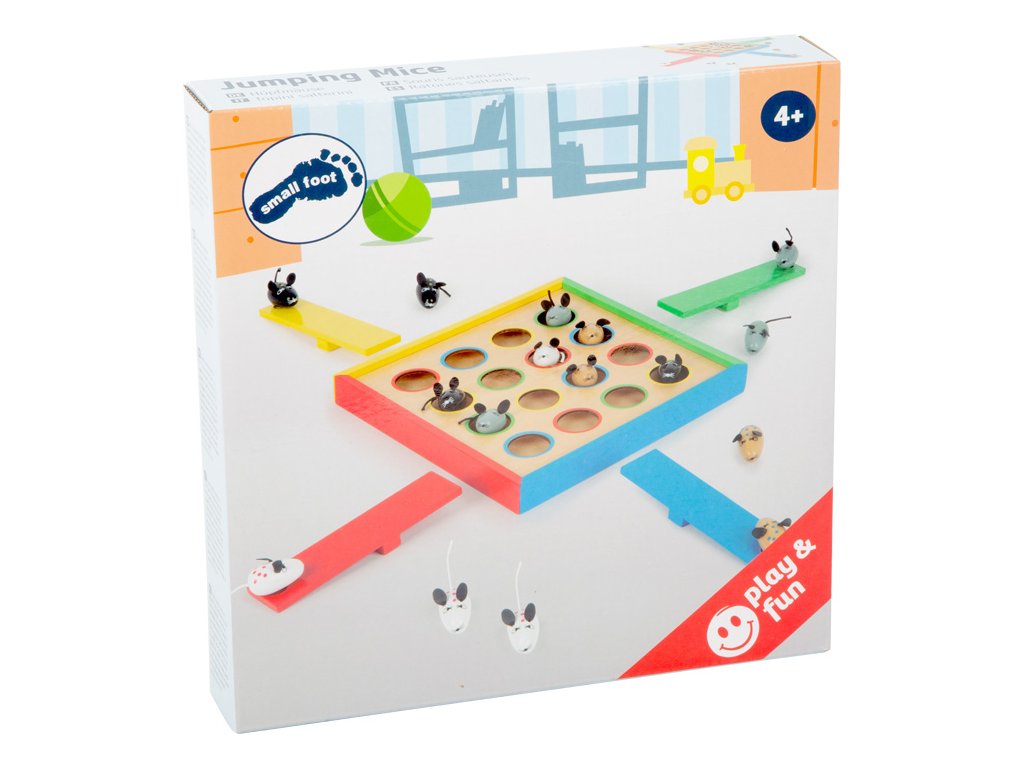 Zábavná hra na zručnost a trpělivost pro celou rodinu. 16 myšek a 4 houpačky, díky kterým myšky skáčou. Údery různou silou ovlivní, jak daleko myška doletí. Cílem hry je katapultovat figurky do barevně označených otvorů. Hlavní vlastnosti: trénuje koordinaci ruky a okapodporuje soustředění, zručnost a trpělivosthra pro 1-4 hráče