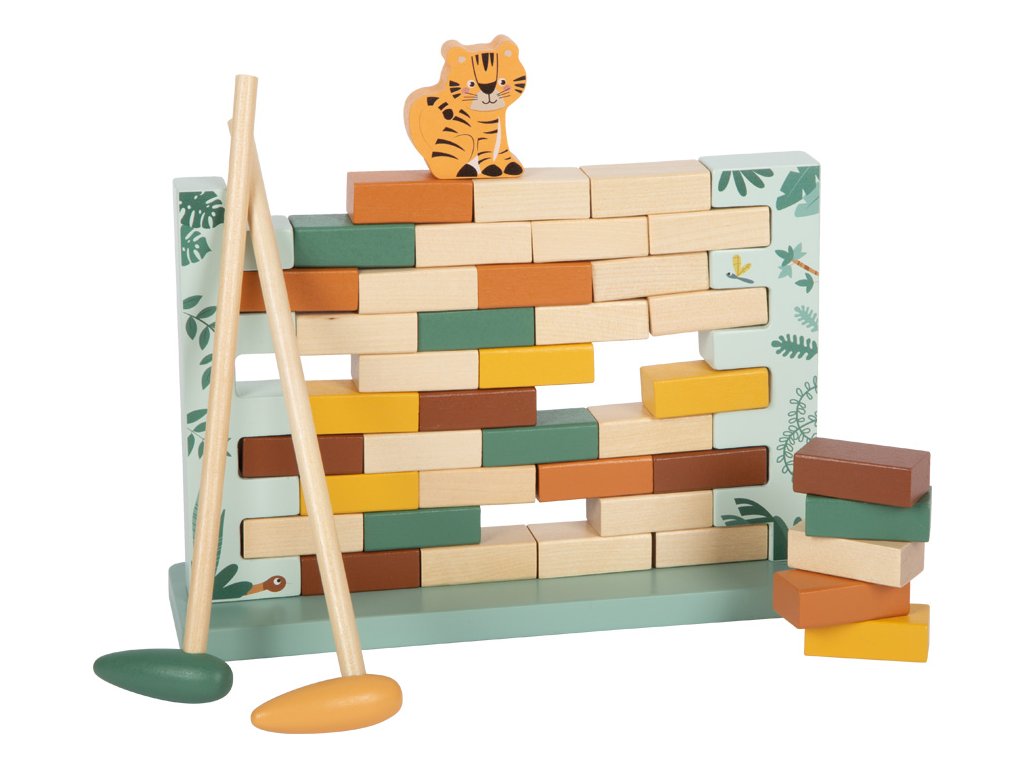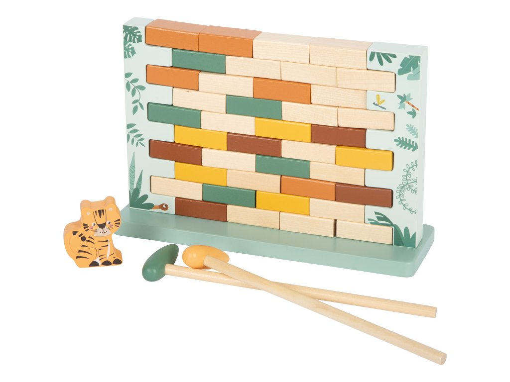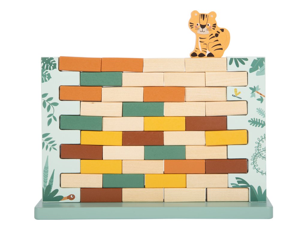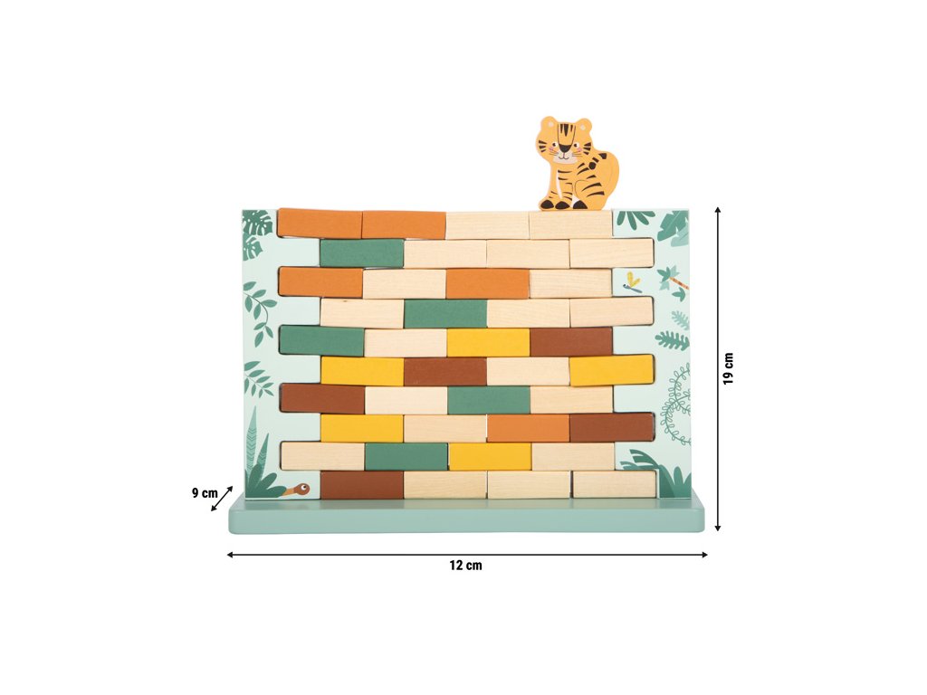 Dřevěná společenská hra Vratká zeď Safari, zábava pro celou rodinu začíná! Tato originální dřevěná hra ze 100% certifikovaného dřeva FSC® procvičí postřeh, trpělivost i jemnou motoriku. Úkolem hráčů je pomocí přiložených dřevěných paliček opatrně vytlačovat barevné cihličky ze zdi, aniž by se stavba zřítila a zároveň dávat pozor, aby nespadl malý tygřík, který zeď hlídá. Každý tah vyžaduje soustředění a přesnou ruku, takže hra skvěle podporuje rozvoj obratnosti, koordinace a logického myšlení. Barevné cihličky v tlumených odstínech oranžové, žluté, hnědé a zelené přitahují dětskou pozornost. Díky pevnému zpracování, hladkému povrchu a příjemnému přírodnímu materiálu působí hra velmi kvalitně a je bezpečná i pro menší děti. Lze ji hrát samostatně nebo ve skupině, takže se stane oblíbenou aktivitou při rodinných chvílích i dětských setkáních.Tato dřevěná společenská hra nejen zabaví, ale také podporuje trpělivost, strategické myšlení a spolupráci. V kombinaci s dalšími hračkami z řady Safari vytváří krásný, stylově sladěný svět plný zábavy a dobrodružství. Hlavní vlastnosti: vyrobena ze 100% certifikovaného dřeva FSC® obsahuje barevné dřevěné cihličky, základnu, dvě paličky a figurku tygříkarozvíjí jemnou motoriku, koordinaci, trpělivost a strategické myšlenípodporuje koncentraci a obratnost při každém tahuskvělá hra pro děti všech věkových kategorií, která baví i rodičeproduktová řada Safari Značka a certifikát FSC® (Forest Stewardship Council) zaručuje, že dřevo, ze kterého byl produkt vyroben, nebylo vytěženo nelegálně a pochází z lesů obhospodařovaných šetrným či přírodě blízkým způsobem, ve kterém jsou dodržovány přísné environmentální a sociální požadavky. Značka FSC® na výrobku znamená, že svým nákupem pomáháte chránit lesy a podporujete šetrné, odpovědné či přírodě blízké hospodaření, díky kterému jsou naše lesy stabilnější, zdravější, mají přirozenou druhovou skladbu a lépe odolávají negativním následkům klimatických změn.