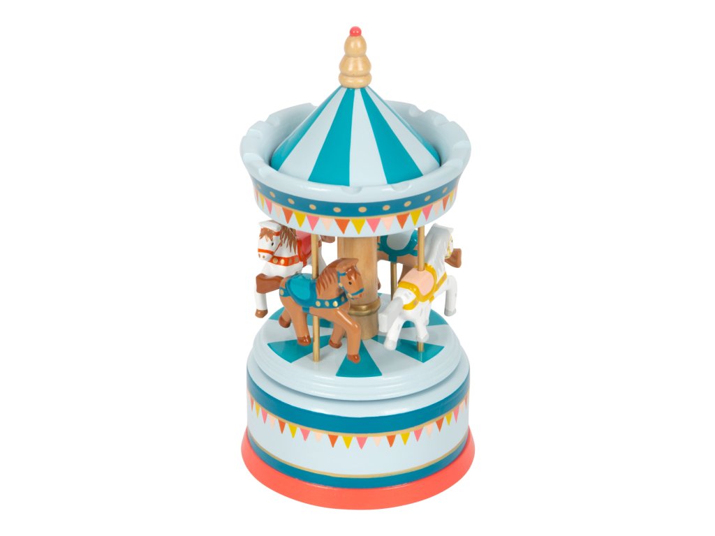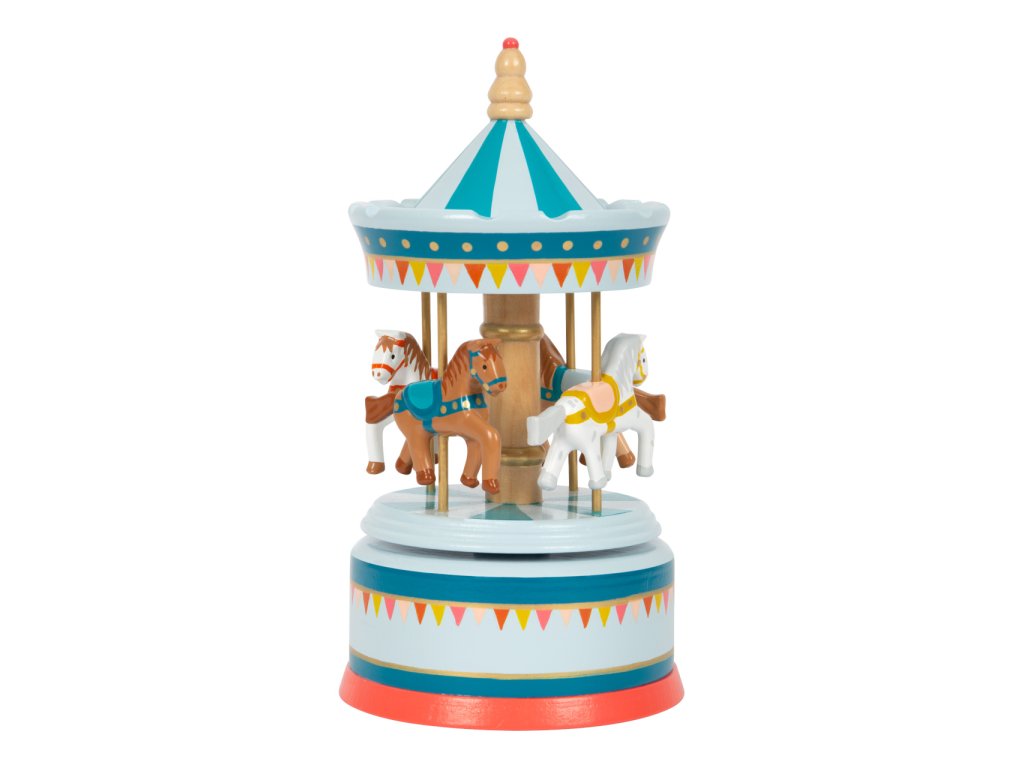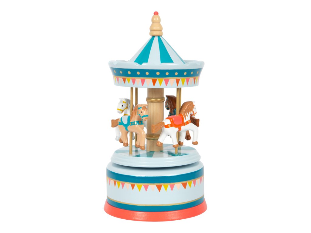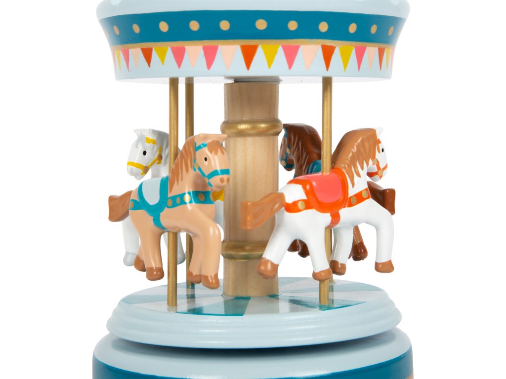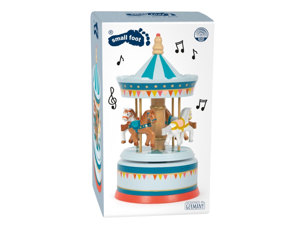 small foot Hrací skříňka koníčkový kolotoč modrý