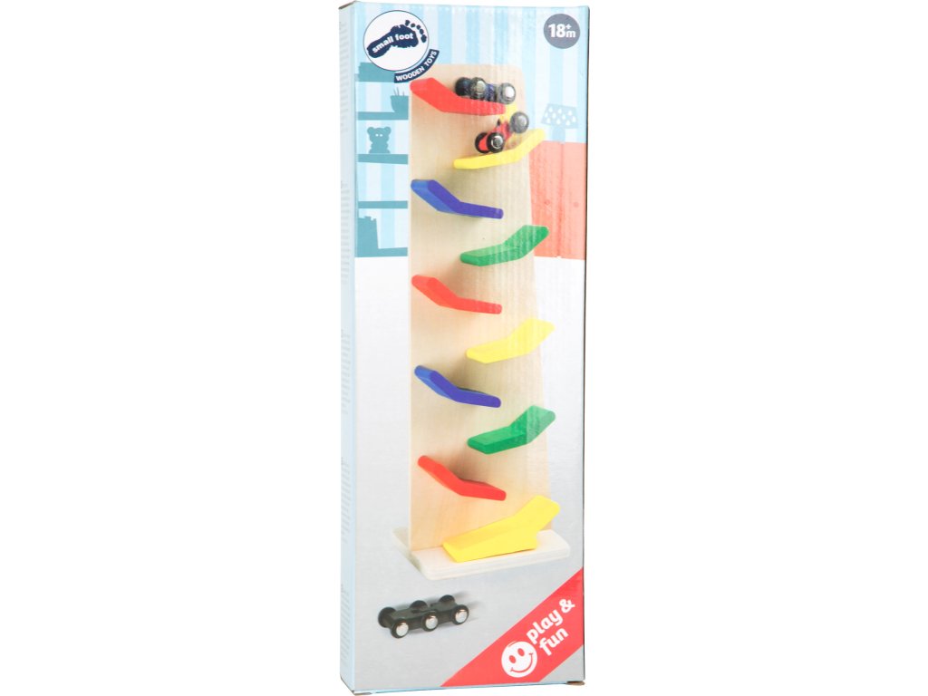 Malí fanoušci aut si s touto dřevěnou kaskádovou věží přijdou opravdu na své, protože je tu zábava pro jejich oči i uši. Po uvolnění malé kloubové vozy sjíždějí po rampách. Dřevění závodníci se řítí po dráze, takže s každým sjezdem děti zažijí spoustu zábavy. Hlavní vlastnosti: rozvíjí jemnou motorikurobustní a odolné dřevěné provedeníhračka vhodná i do školek