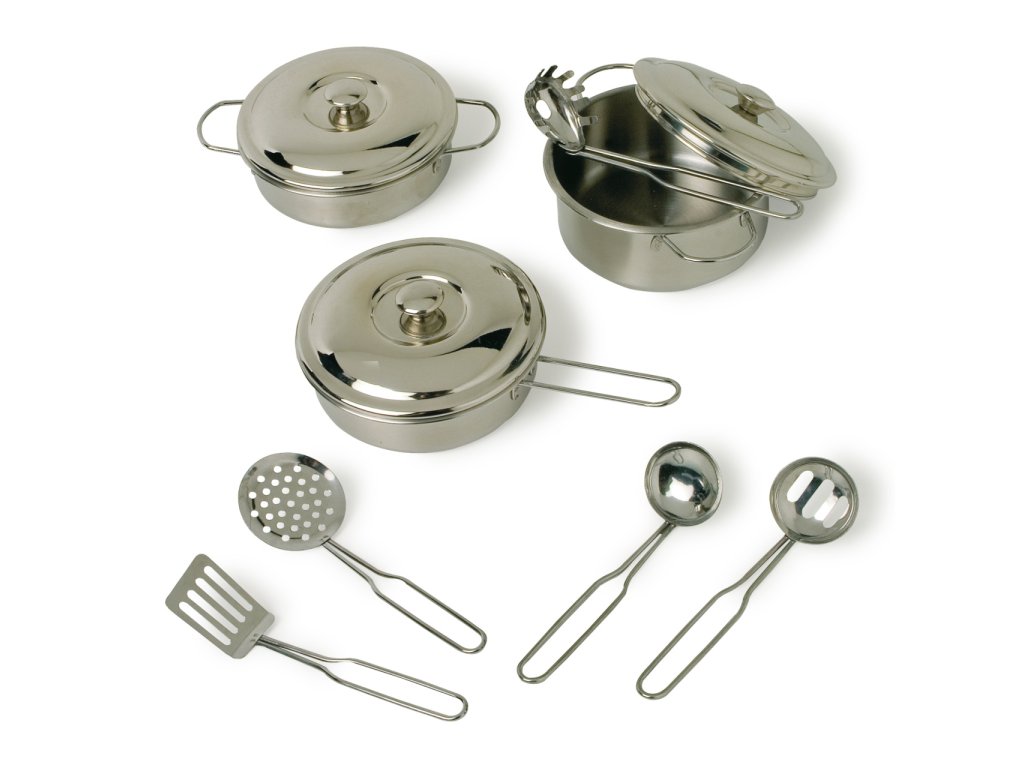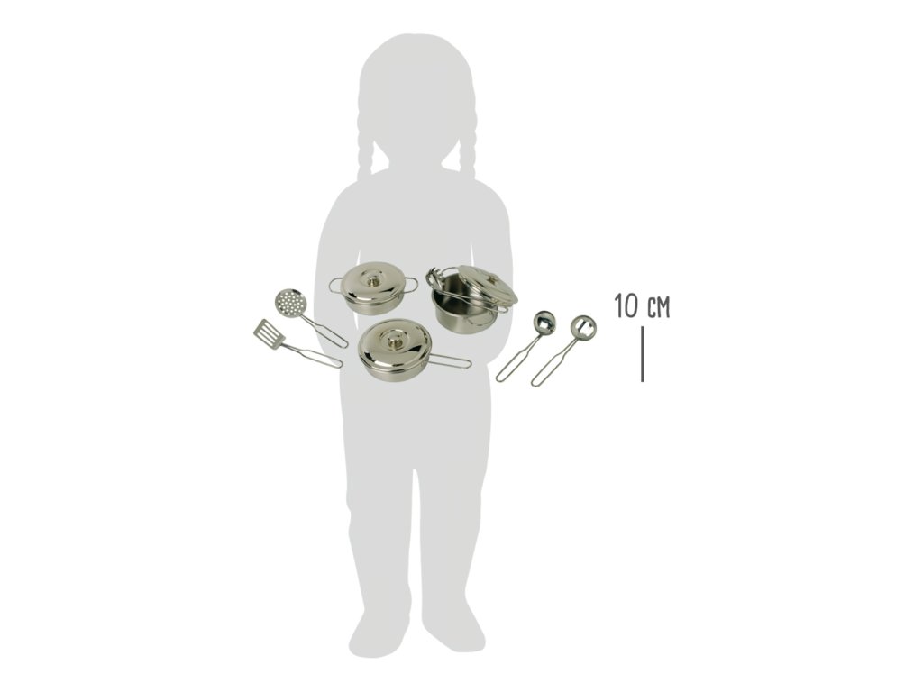 Vařte ve své kuchyni jako profesionálové! Tyto kuchyňské potřeby jsou přesně navrženy pro dětské ruce, a tak si servis lahodných pokrmů strávníci zamilují. Dva hrnce s poklicemi, pánev s poklicí a pět užitečných nástrojů k servírování a přípravě zdejších i exotických pochoutek Vás jistě nadchne. Hlavní vlastnosti: sada kvalitního nádobí na vařenípodporuje fantazii a hraní rolírozvíjí sociální dovednostizlepšuje obratnost a motoriku