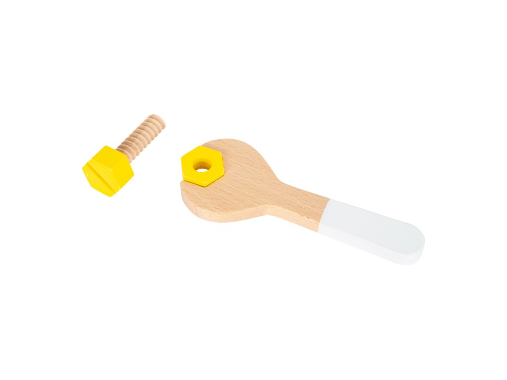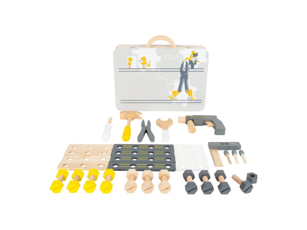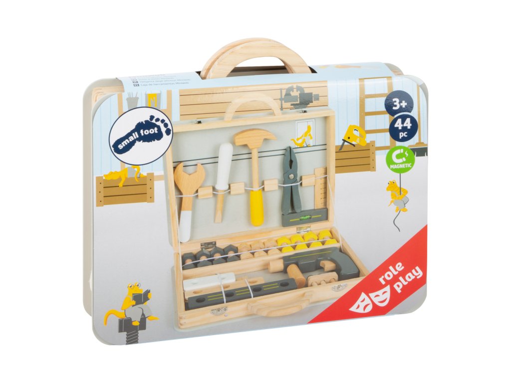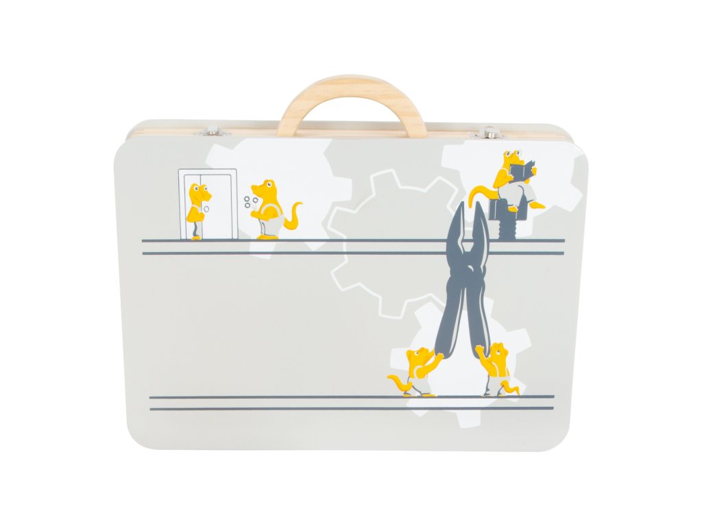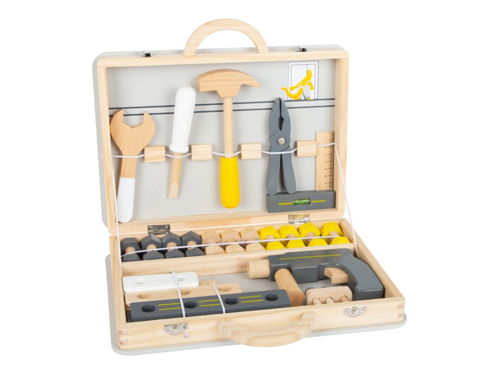 Dejte průchod nadšenému kutilství! Malí řemeslníci i řemeslnice se pomocí kufříku s nářadím stanou nenahraditelnými profesionály. Naleznou v něm všechny nezbytné nástroje, od úhelníku s funkční vodováhou, až po maketu vrtačky s několika magnetickými nástavci. V příslušenství je zahrnuto také množství barevných stavebnicových dílů s robustními šrouby a maticemi. Jejich prostřednictvím mohou děti dát průchod své fantazii, vytvářet rozmanité konstrukce, a tak rozvíjet svou zručnost i další užitečné dovednosti. Pevný a odolný kufřík je uvnitř vybaven gumovými popruhy, díky nimž mohou být všechny součásti vždy bezpečně zajištěny a přehledně uspořádány. Je opatřen spolehlivým kovovým zavíráním a madlem přizpůsobeným ručkám malých šikulů. Souprava je vyrobena z kombinace překližky a masivního dřeva, může proto nabídnout vysokou životnost naplněnou bezpočtem těch nejužitečnějších zlepšováků. Lze vybírat z dvojice různě dekorovaných a barevných provedení, dílenský Miniwob a skandinávský Nordic. Hlavní vlastnosti: úhelník s vodováhou, klíč, šroubovák, kladívko, kleště a vrtačka se 3 nástavci12 plochých stavebnicových dílů různých délek a 11 šroubů s maticemirobustní a odolné dřevěné provedenípraktické a atraktivní balení MiniwobSeznamte se s malými woby, nadšenými krokodýlími kutily! S jejich pomocí jde všechna práce jako po másle a žádná stavba není dost velká a promyšlená. Pestrá řada nástrojů a nářadí skýtá dokonalou zábavu pro všechny malé řemeslníky, jejich prostřednictvím mohou být kreativní a realizovat všechny své fantastické nápady. Jednotlivé sady je možno mezi sebou kombinovat a rozšiřovat s rostoucími dovednostmi dětí. Díky jednotícímu barevnému motivu a vyobrazením roztomilých Wobů je možno vytvořit jedinečný a ucelený dílenský koutek, který bude zároveň hodnotnou stavebnicí rozvíjející zručnost a představivost.
