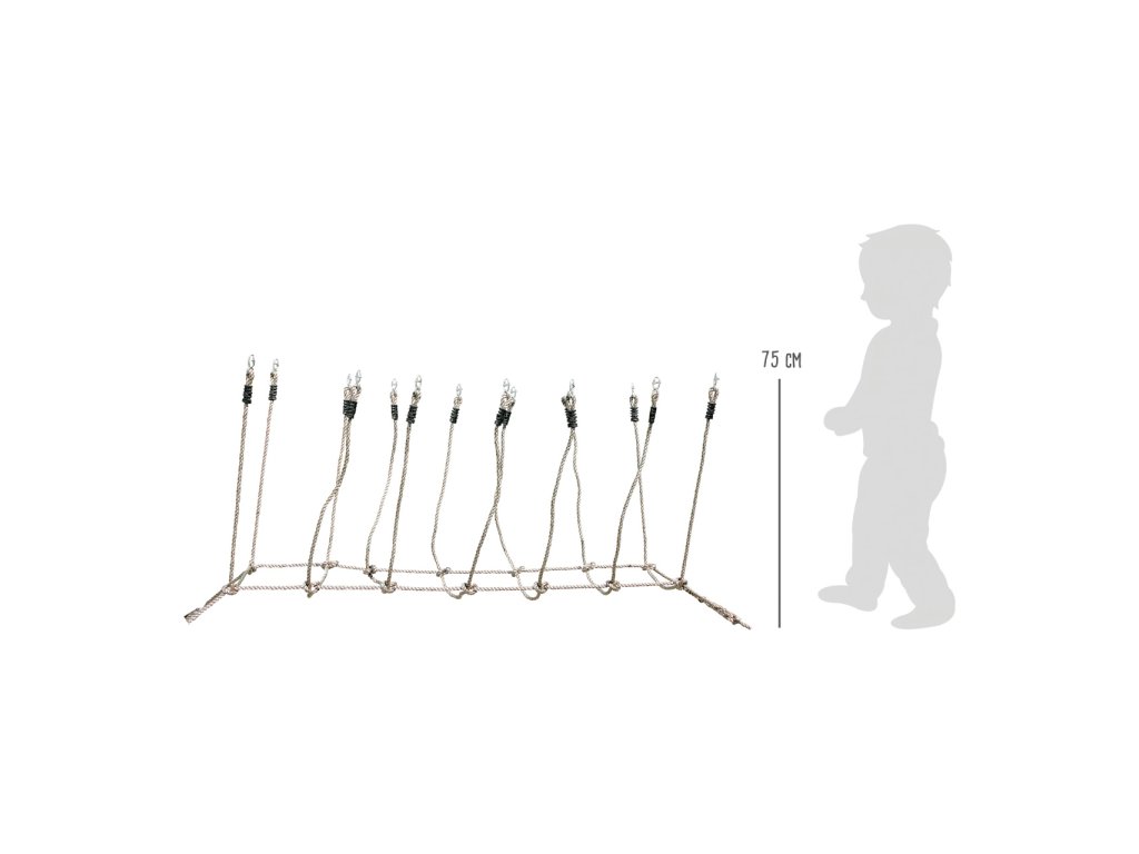 Prověřte a trénujte odvahu, sílu a smysl pro rovnováhu svých dětí pomocí provazového mostu. Skvěle doplní zahradu, nebo dětské hřiště, stačí natáhnout mezi dva stromy. Robustní a poddajné lano je odolné povětrnostním vlivům. Jeho konce jsou opatřeny kovovými průvleky, s jejichž pomocí je zavěšení velmi snadné a variabilní. Hlavní vlastnosti: délka přemostění 2 mnosnost 100 kg Dokumentace: návod k použití Lanový most (CZ)návod k použití Lanový most (SK)